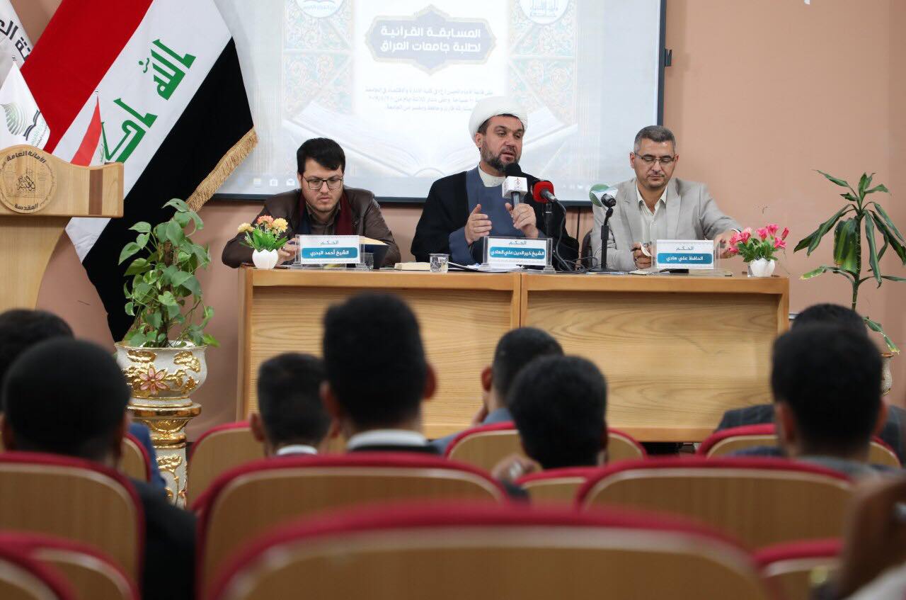 بالتعاون مع كلية العلوم الإسلامية في جامعة وارث الأنبياء(عليه السلام) اقام دار القرآن الكريم التابع للعتبة الحسينية المقدسة المسابقة القرآنية الوطنية الثالثة لطلبة جامعات العراق ضمن مشروع القران الكريم في الجامعات العراقية .