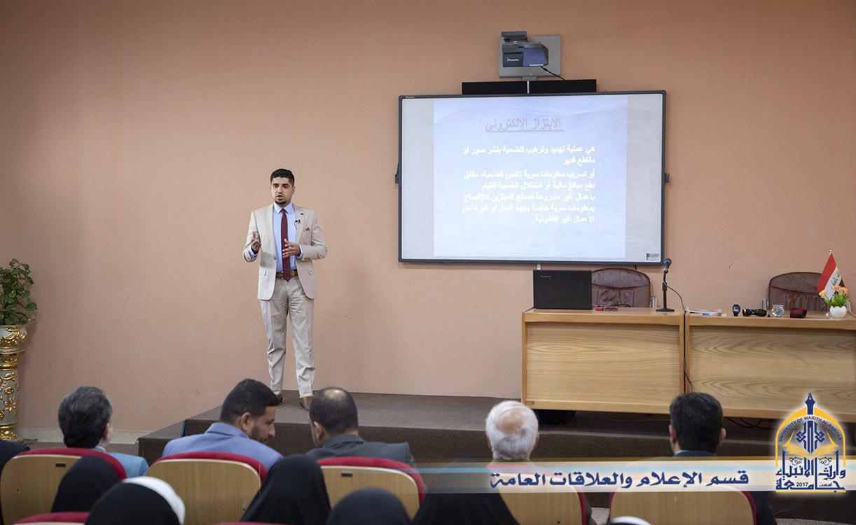 بالتعاون بين قسم النشاطات الطلابية في جامعة وارث الانبياء (عليه السلام) ومؤسسة الامام الرضا (عليه السلام) الخيرية وبالتنسيق مع مديرية الامن الوطني في كربلاء وبحضور الاستاذ الدكتور طالب حسن موسى رئيس الجامعة والسيد المساعد العلمي اقيمت يوم الاربعاء 24/4/2019 ندوة تثقيفية حول جريمة الابتزاز الالكتروني التي انتشرت وبشكلاً كبير في الاونة الاخيرة