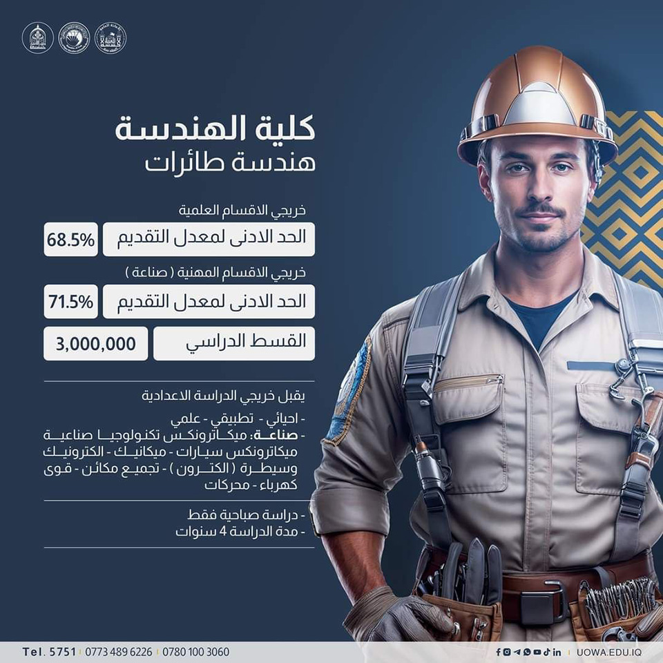 اكتشف تخصصات جامعة وارث الانبياء (عليه السلام) في المجالات الطبية، الهندسية، والعلوم الإنسانية.
