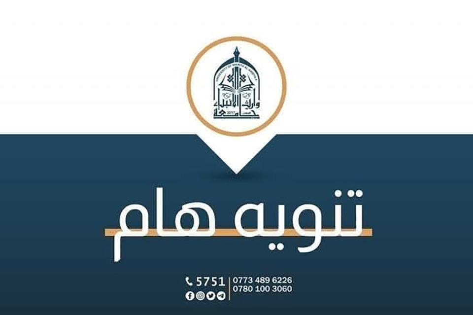 أعلنت جامعة وارث الأنبياء (عليه السلام) عن حاجتها إلى كوادر تخصصية من حملة شهادة الدكتوراه حصراً، في التخصصات الآتية: