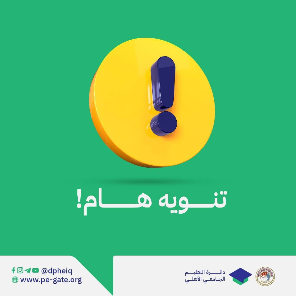 تعلن دائرة التعليم الاهلي الجامعي عن تمديد التقديم للجامعات والكليات الاهلية لغاية 15\11\2023