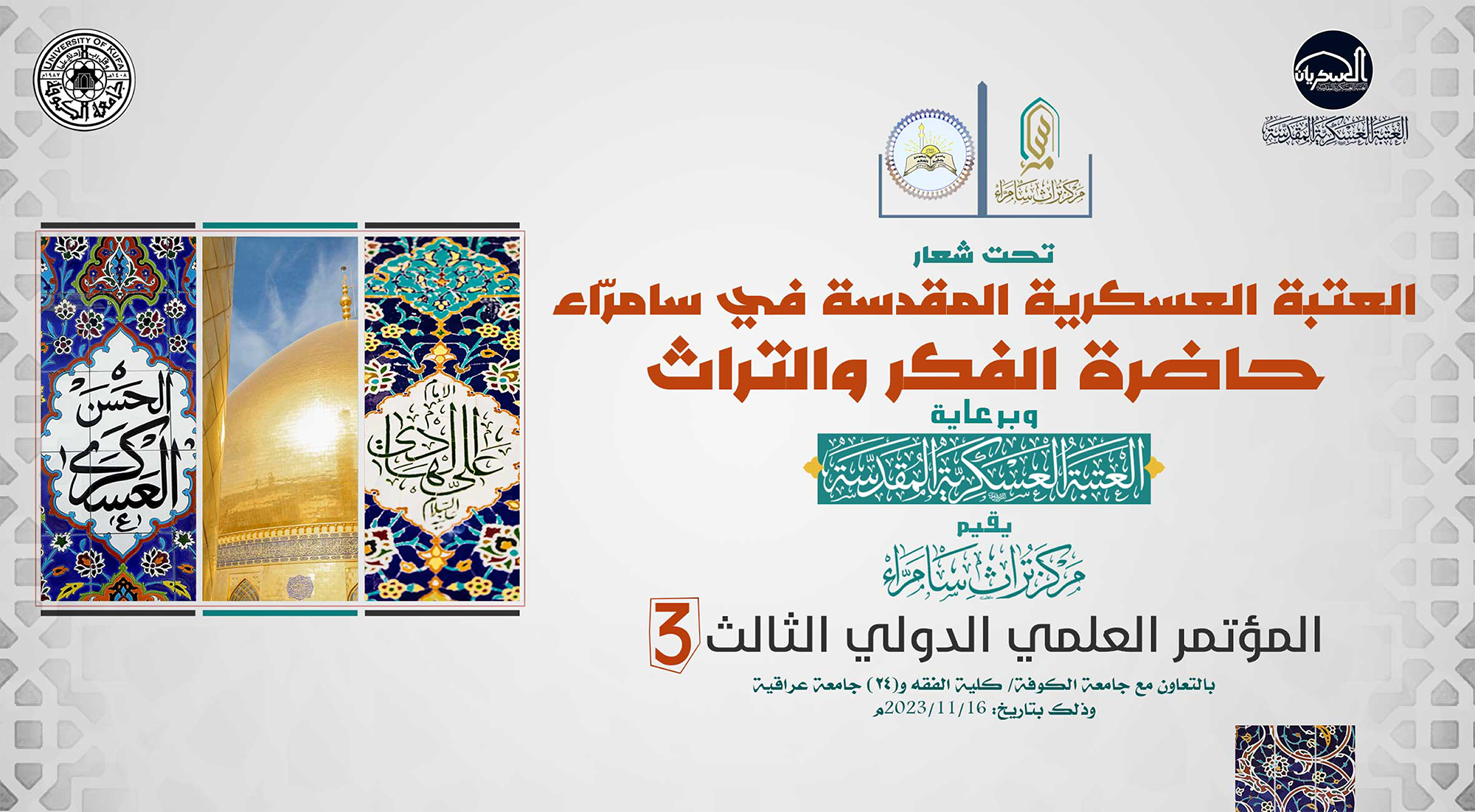 تحت شعار (العتبة العسكرية المقدسة في سامراء حاضرة الفكر والتراث) وبرعاية العتبة العسكرية المقدسة، يقيم مركز تراث سامراء (المؤتمر العلمي الدولي الثالث)