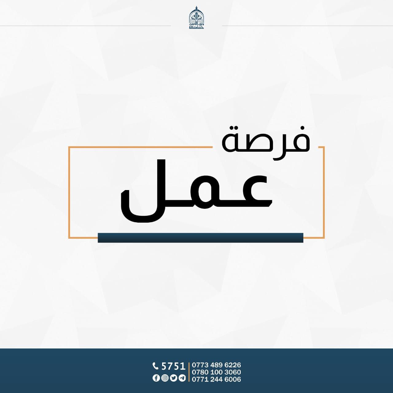 يعلن مركز التأهيل والتوظيف في جامعة وارث الانبياء(عليه السلام) عن وجود شاغر وظيفي في احدى الشركات (عدد 2) مخصص لخريجي جامعة وارث الانبياء(عليه السلام) (كافة اختصاصات الجامعة).
