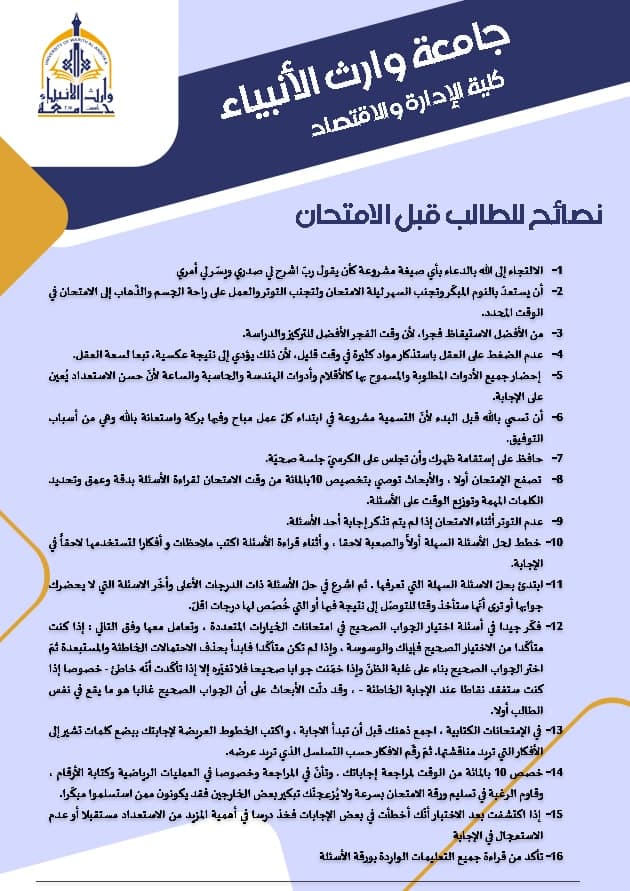 مع تمنياتنا لجميع طلبتنا الأعزاء بالموفقية والنجاح.