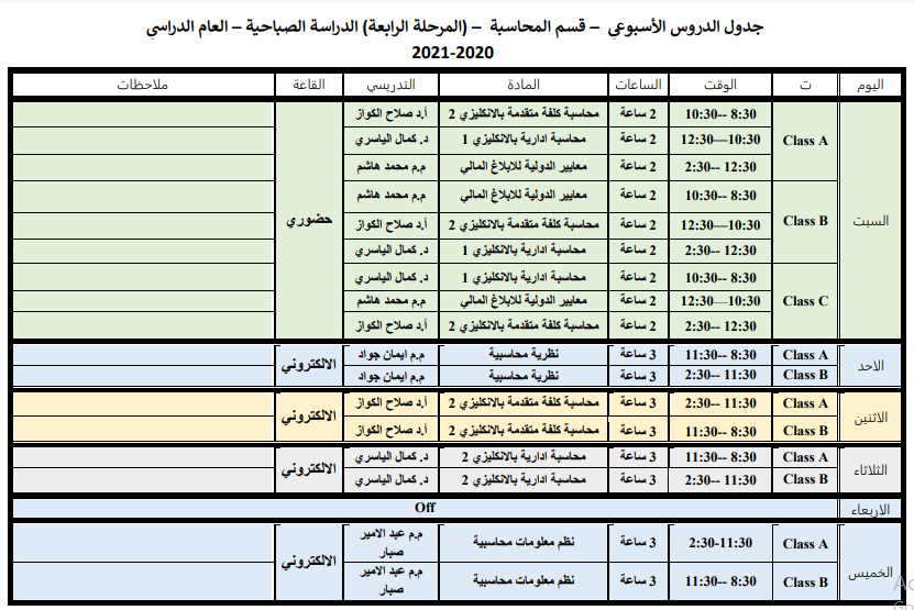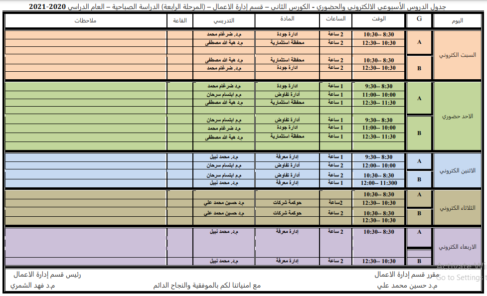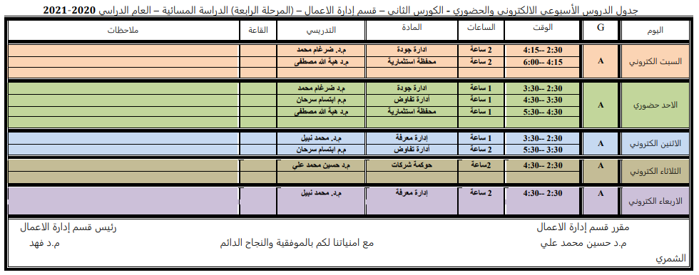جدول الامتحانات النهائية الحضورية للكورس الاول لقسم ادارة الاعمال للدراستين الصباحية والمسائية للعام الدراسي 2020-2021