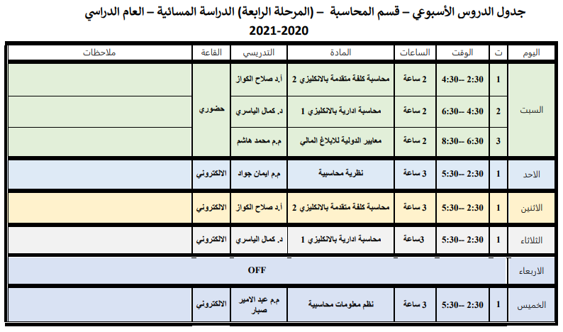 انتهاء الامتحانات الالكترونية للكورس الاول من العام الدراسي الحالي 2020-2021 لقسم المحاسبة وذلك يوم السبت المصادف 3/4/2021، حيث عبر السيد عميد كلية الادارة والاقتصاد (أ.د. عواد الخالدي) عن شكره لاعضاء اللجنة الامتحانيه المتمثلة بالسيد رئيس اللجنة (م.د. هبة الله مصطفى) والاعضاء ( م.د. محمد مجيد و م.د. محمد نبيل الحبوبي )، كما عبر السيد العميد عن شكره وامتنانه لالتزام الطلبة بالتعليمات الامتحانية