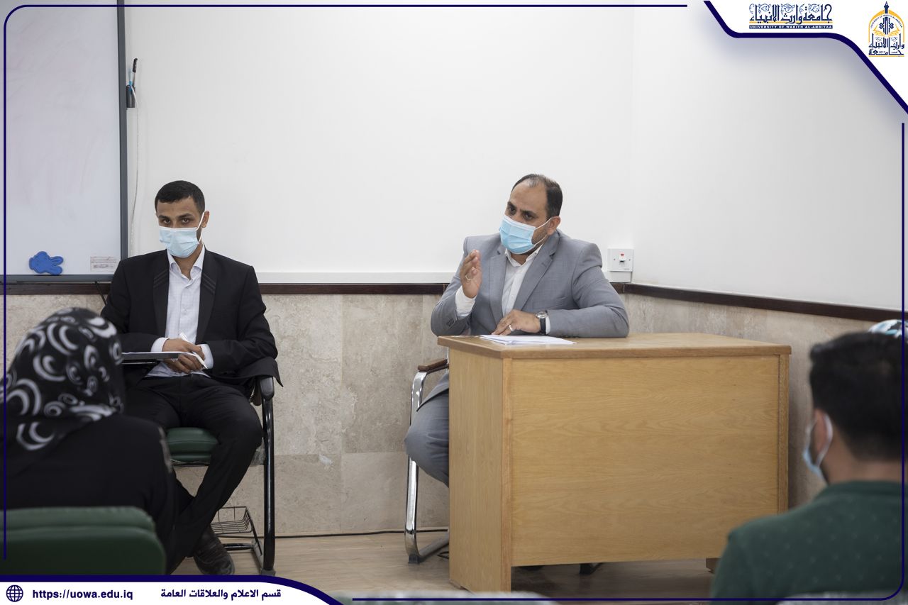اجتمع السيد رئيس الجامعة "الاستاذ الدكتور طالب الموسوي" مع السيد عميد كلية الادارة والاقتصاد "الاستاذ الدكتور عواد الخالدي" واعضاء الهيئة التدريسية في الكلية المتمثلة بالسادة رؤساء الاقسام والسادة بقية الاعضاء لمناقشة سير الامتحانات الحضورية وتذليل العقبات امام الطلبة ومناقشة ما تحتاجها الكلية للنهوض بالواقع التعليمي.
