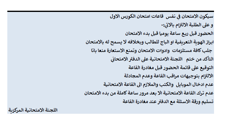 جدول امتحانات نهاية الكورس الثاني لكلية الادارة والاقتصاد