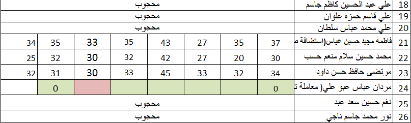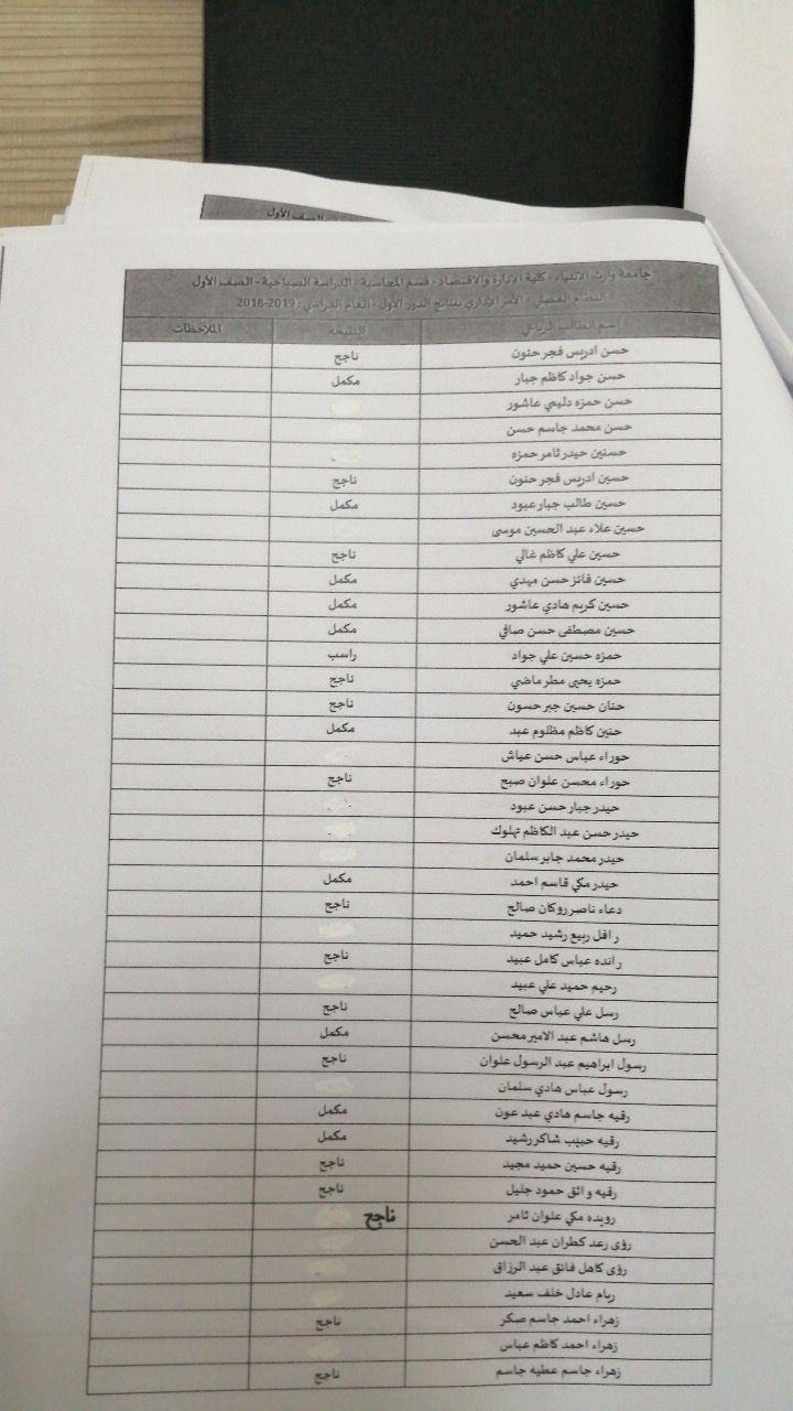 ملاحظة: بامر من السيد رئيس قسم المحاسبة تم اضافتها بالتناوب هي والاستاذ المقرر كمراقبين لجميع الايام