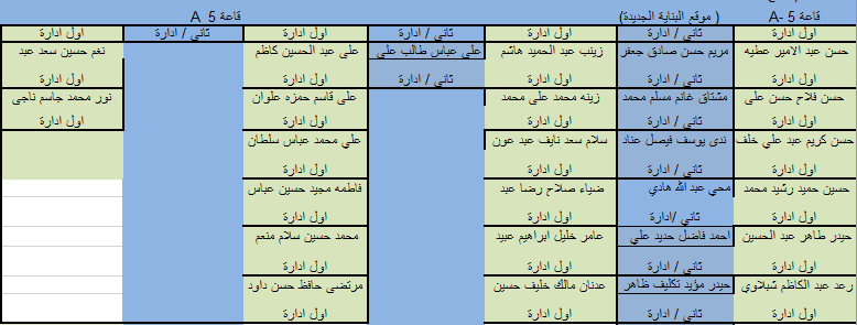 جدول المراقبين للامتحانات الالكترونية لقسم ادارة الاعمال للكورس الدراسي الاول للعام 2020-2021
