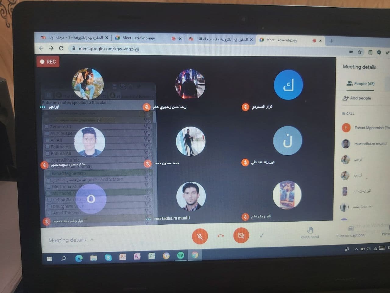 جدول المراقبين للامتحانات الالكترونية لقسم المحاسبة للكورس الدراسي الاول للعام 2020-2021