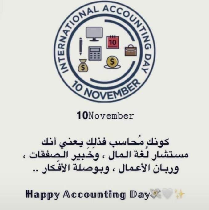 تتقدم كلية الادارة والاقتصاد /قسم المحاسبة في اجمل التهاني والتبريكات للاسرة المحاسبية في العراق وللعالم اجمع بمناسبة يوم المحاسبة العالمي والذي يصادف يوم العاشر من شهر تشرين الثاني من كل عام، وفِي هذه المناسبة لا يسعنا إلا أن نبارك ونحيي أبنائنا واخوتنا في المهنة وكل عام والاسرة المحاسبية بالف خير