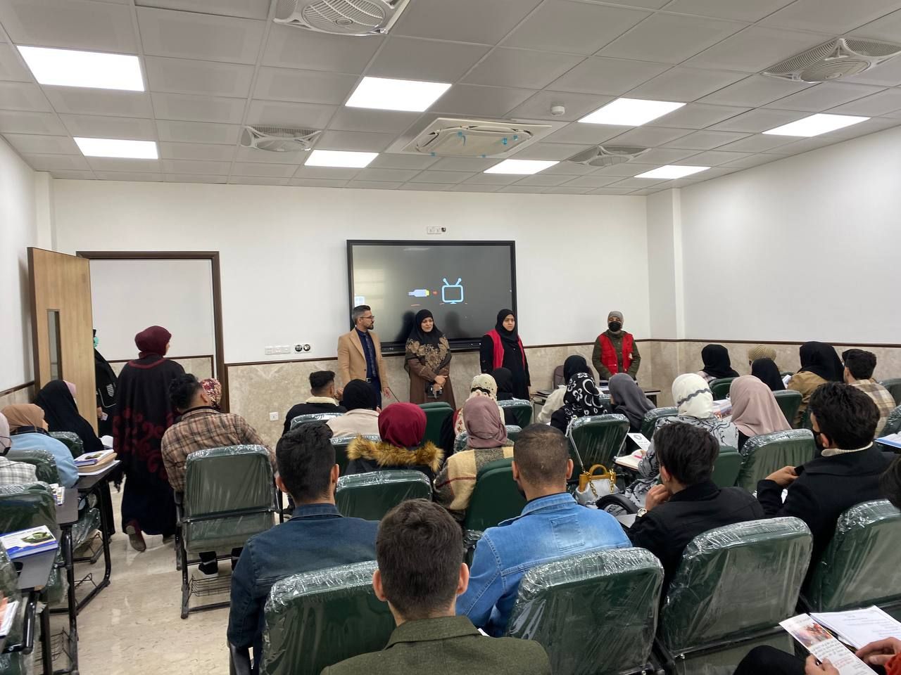 في رحاب جامعة وارث الأنبياء اقامت كليه الادارة والاقتصاد/ قسم المحاسبة وبالتعاون مع جمعية الهلال الاحمر حلقة نقاشية في تاريخ ٢٤/١/٢٠٢٢، بعنوان استقطاب الشباب للتطوع في الأعمال الانسانيه، اذ تم التعريف عن الجمعيه اولا وماهية الأعمال الإنسانية التي ينبغي تقديم المساعدات لهم وكيفية التعامل معها.