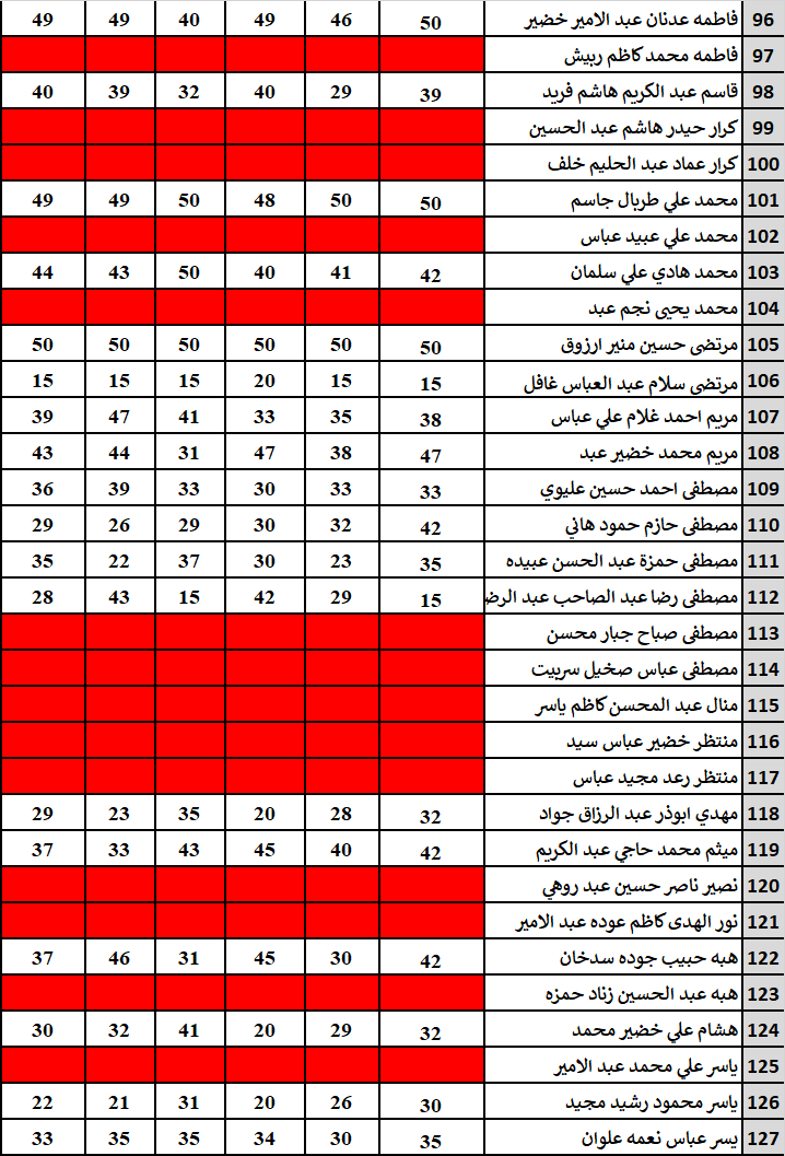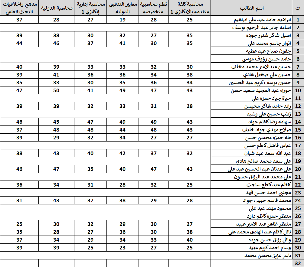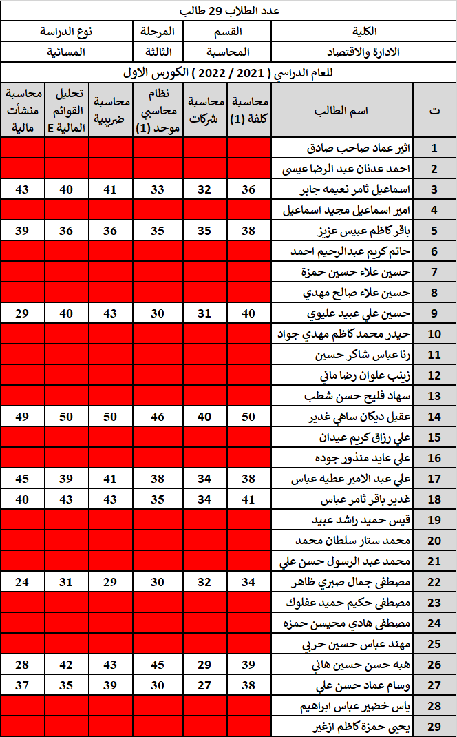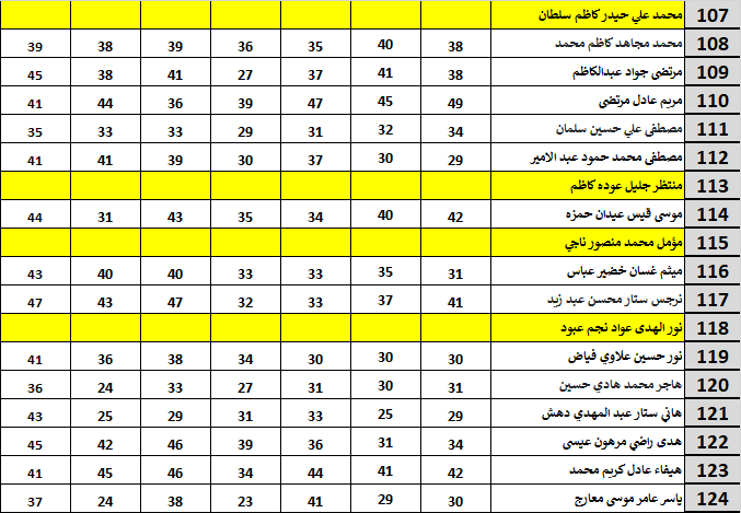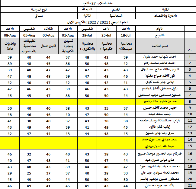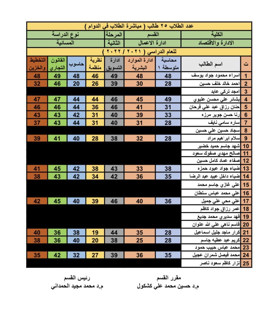 في حالة عدم ورود اسم الطالب ضمن قائمة السعي، يرجى مراسلة مقرر القسم "دكتور علي كيشوان"، علما ان حقول الدرجات الفارغة امام اسم الطالب تعني ان درجات الطالب قد تم "حجبها".