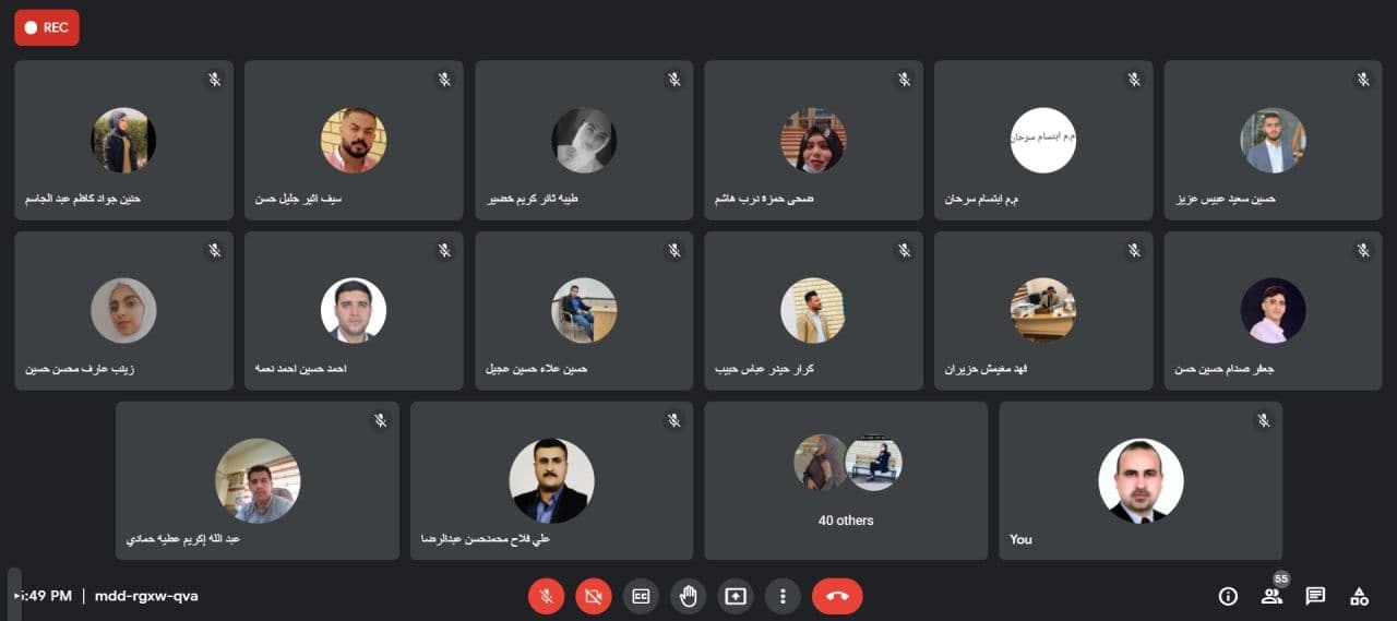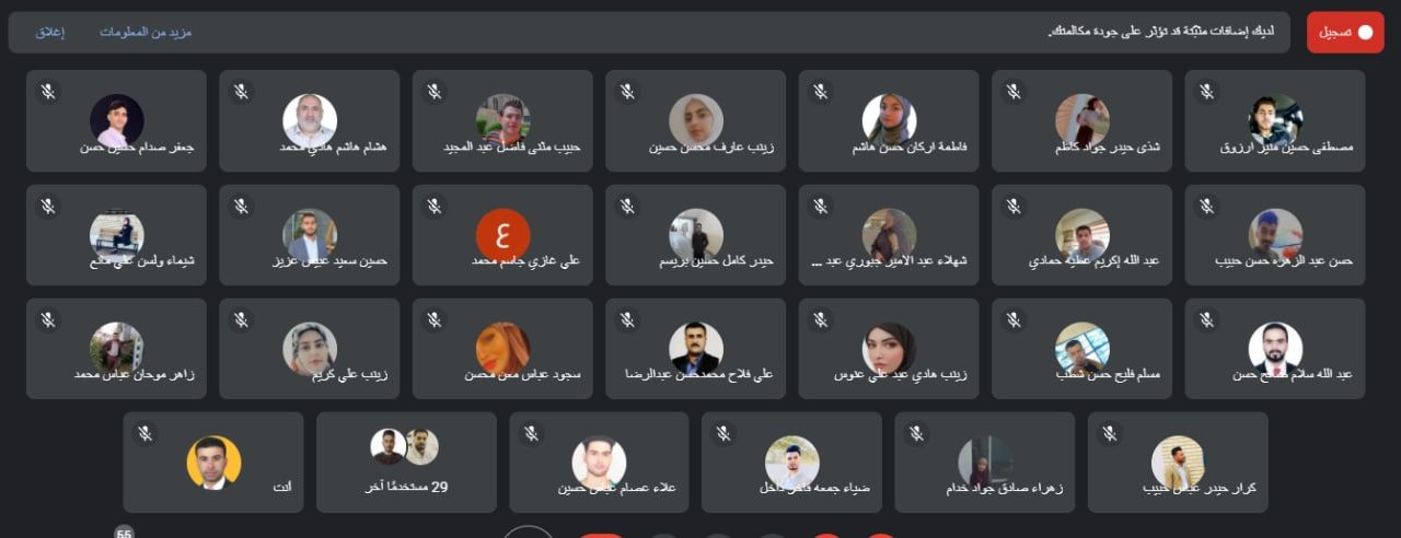 اجتماع رئيس قسم المحاسبة د.هبة الله مع ممثلين قسم المحاسبه في تاريخ ٢٠٢١/٦/٢؛ وقد تم اختيار الممثلين لكونهم من الطلبه الاوائل في قسم المحاسبة للكورس الثاني٢٠٢٠_٢٠٢١ ؛ وقد تم مناقشة القضايا والمشاكل التي تخص الطلبه بغية تقدم المساعدة العلميه لهم وايجاد الحلول لتلك المشاكل