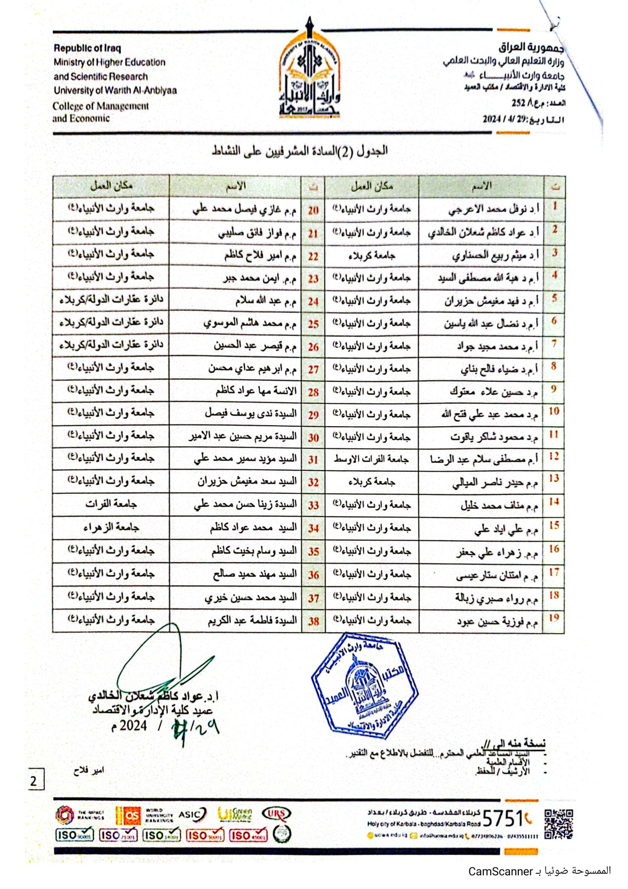 أقامت كلية الإدارة والاقتصاد، بمشاركة طلبتها، مأدبة طعام للفقراء في دار القزويني، ضمن إطار العمل التطوعي والجهود الإنسانية التي تهدف إلى دعم المجتمع.