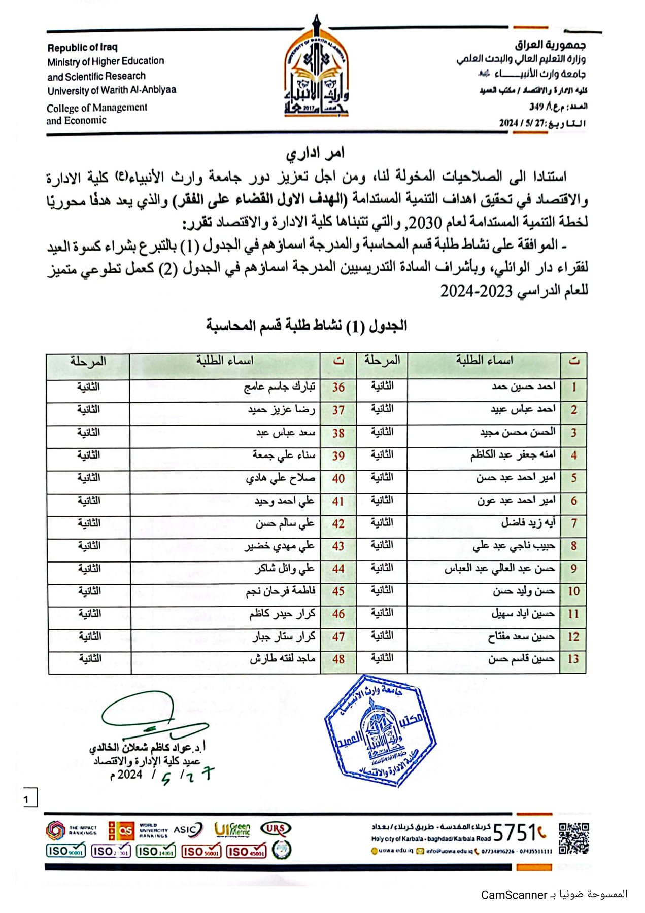 أقامت كلية الإدارة والاقتصاد، بمشاركة طلبتها، مبادرة تطوعية لشراء ملابس كسوة العيد للفقراء في دار الوائلي، تعزيزًا لروح التكافل الاجتماعي ودعم المجتمع.