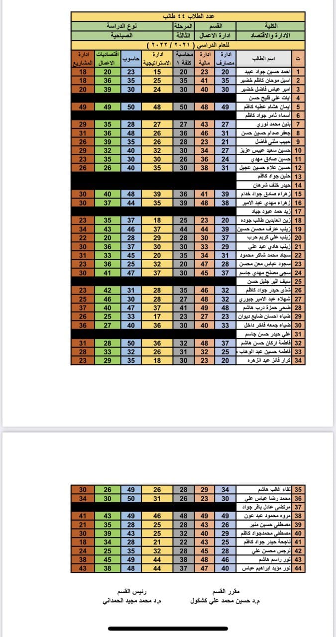سعيات الكورس الاول لطلبة قسم ادارة الاعمال مرحلة ثالثة