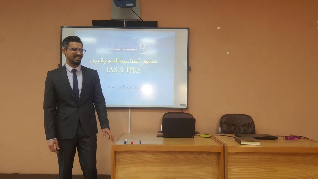 أقام قسم ادارة الاعمال في كلية الادارة والاقتصاد حلقة نقاشية بعنوان (معايير المحاسبة الدولية بين IAS&IFRS) قام بألقائها الاستاذ (م.م عبدالامير صبار) يوم الاثنين المصادف 7\1\2019وقد حضر الجلسة كل من سيادة عميد الكلية أ.د.عامر العطوي و رئيس قسم المحاسبة م.د.فهد الشمري و رئيسة قسم ادارة الاعمال د. نضال المالكي والسادة التدريسيين وقد ركزت الورشة على توضيح مفهوم المعايير الدولية وطريقة انشائها وكيفية توظيفها لخدمة الجانب التعليمي لطلبة كليتنا