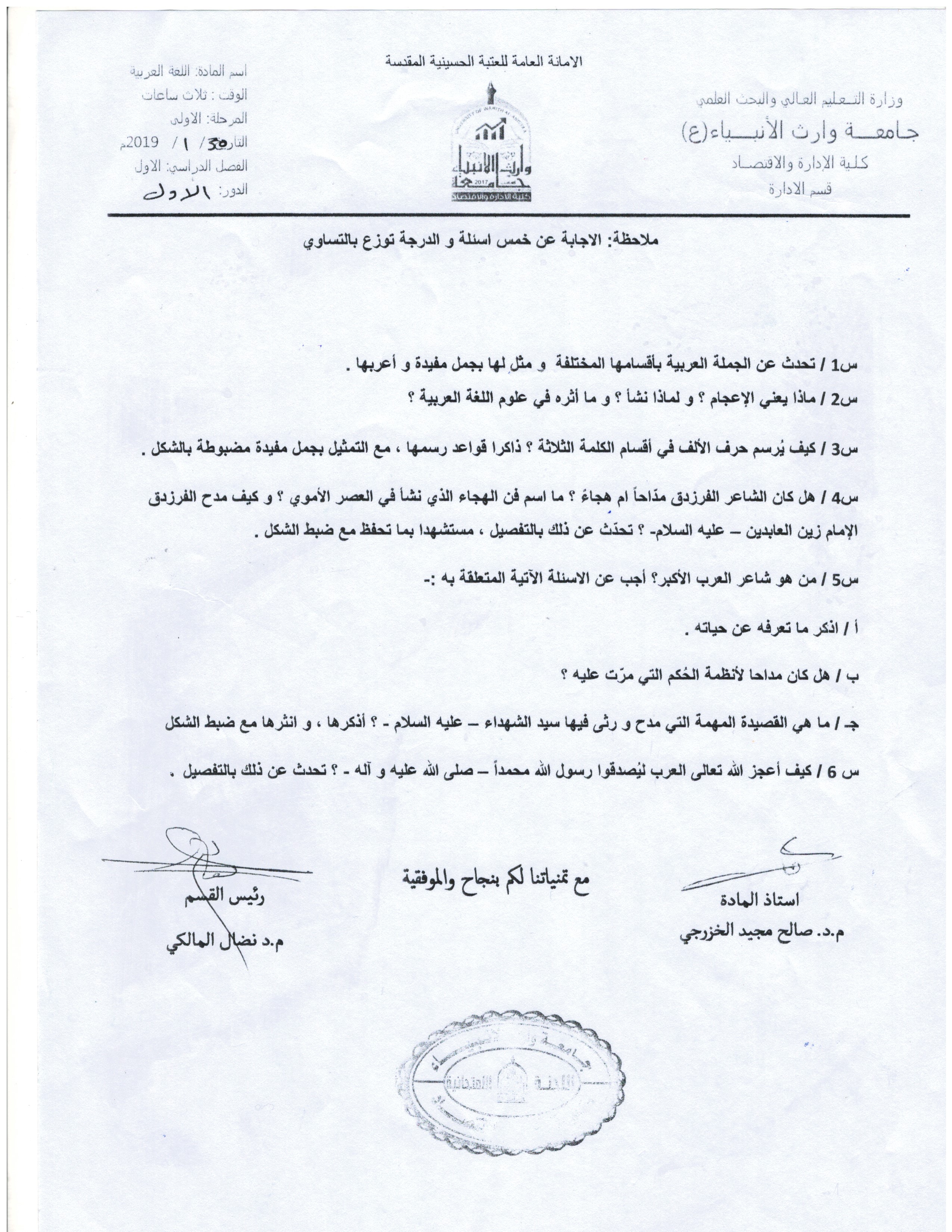 بعض اسئلة الكورس الاول للمرحلة الاولى والثانية ولقسمي المحاسبة وادارة الاعمال المجموعة الرابعة