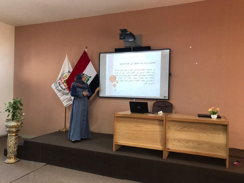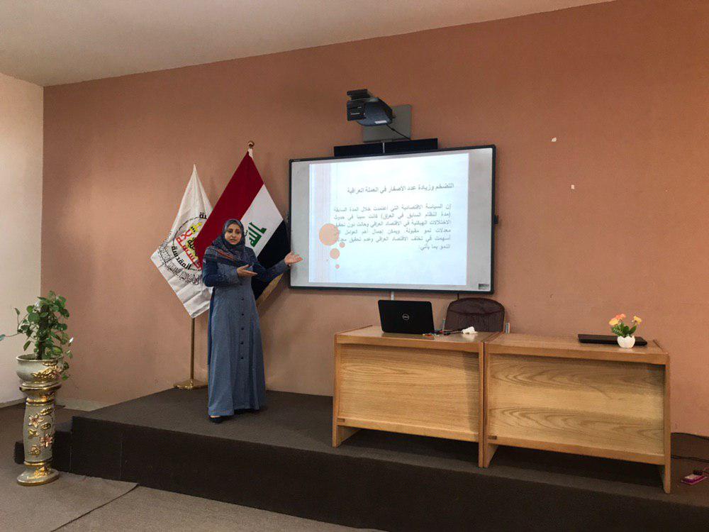 اقيمت في قاعة الامام الحسن -كلية الادارة والاقتصاد حلقة نقاشية بعنوان الصدمات الاقتصادية واثرها في سلوك العملة المحلية من قبل م.د رجاء جابر وقد تضمنت الحلقة الاشارة الى العديد من المحاور المهمة التي تتعلق بالصدمات الاقتصادية بالاضافة الى تقديم امثلة وقد شارك في الحلقة النقاشية اساتذة كلية الادارة والاقتصاد