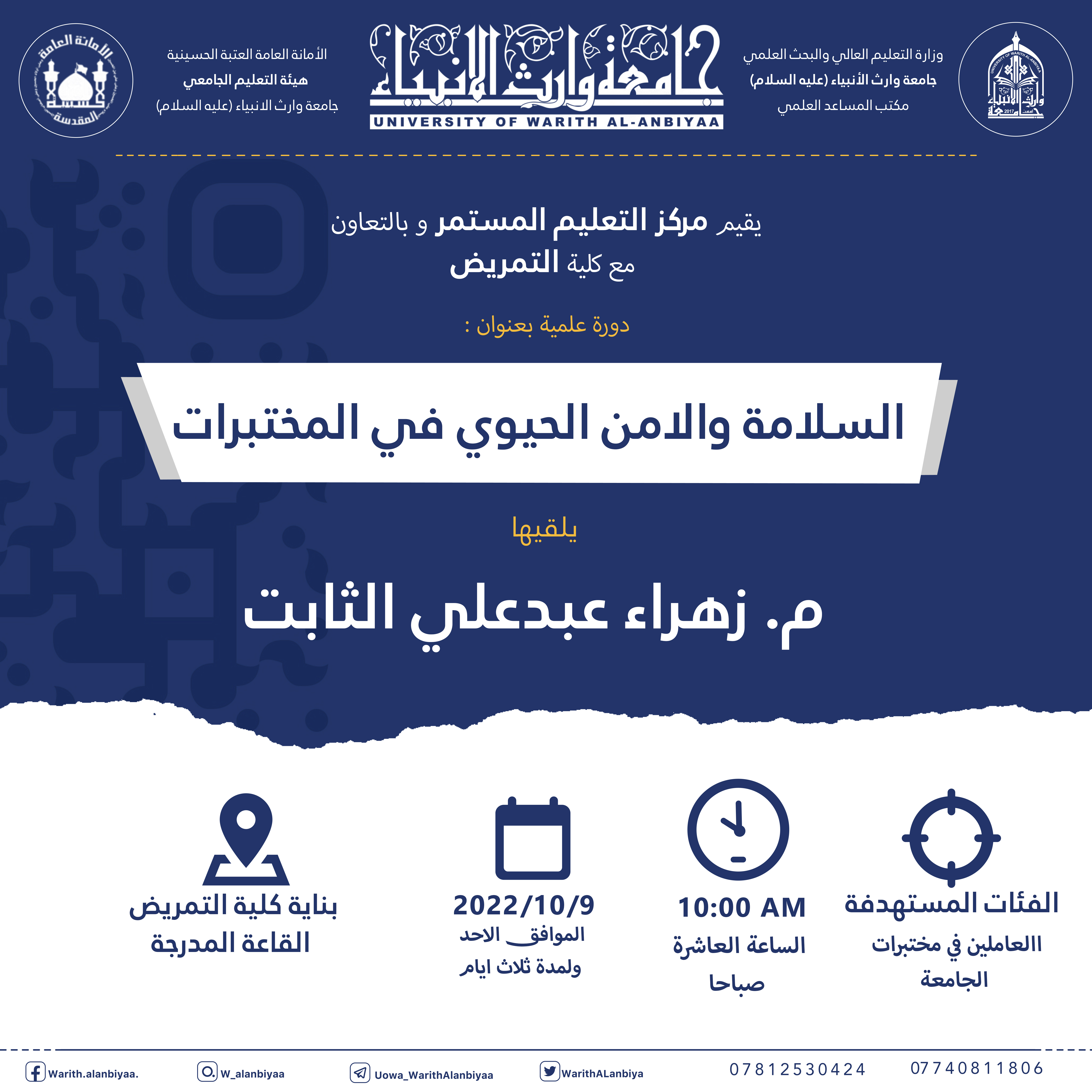اعلان / دورة السلامة والامن الحيوي في المختبرات