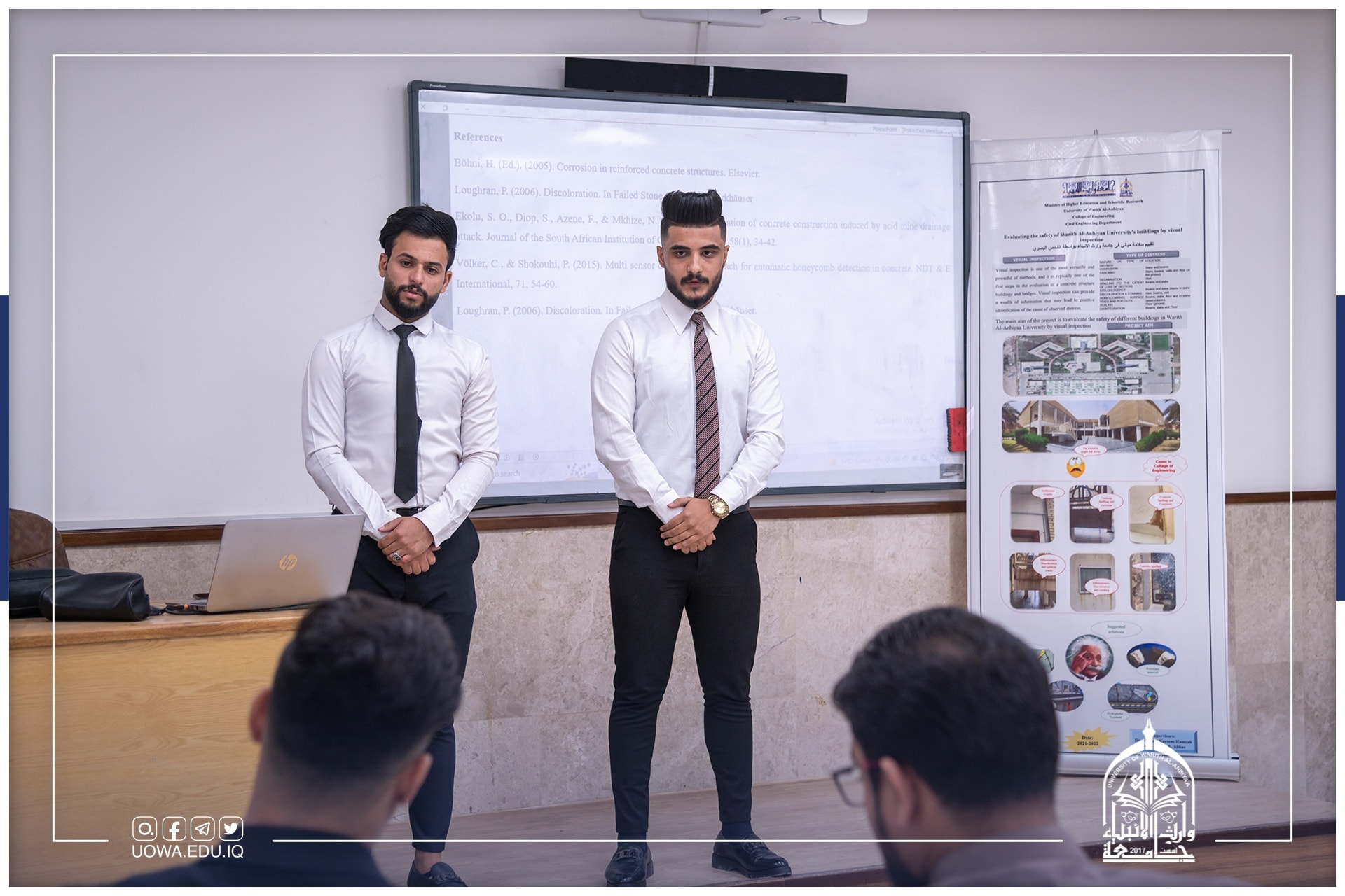 بحضور السيد رئيس الجامعة الاستاذ الدكتور ابراهيم الحياوي، وباشراف عميد كلية الهندسة الاستاذ المساعد الدكتور حسين هادي العوادي ،واللجنة العلمية المشكلة من قبل عمادة الكلية للإشراف على المناقشة، عقد قسم الهندسة المدنية جلسات متعددة، لمناقشة بحوث التخرج لطلبة المرحلة الرابعة.