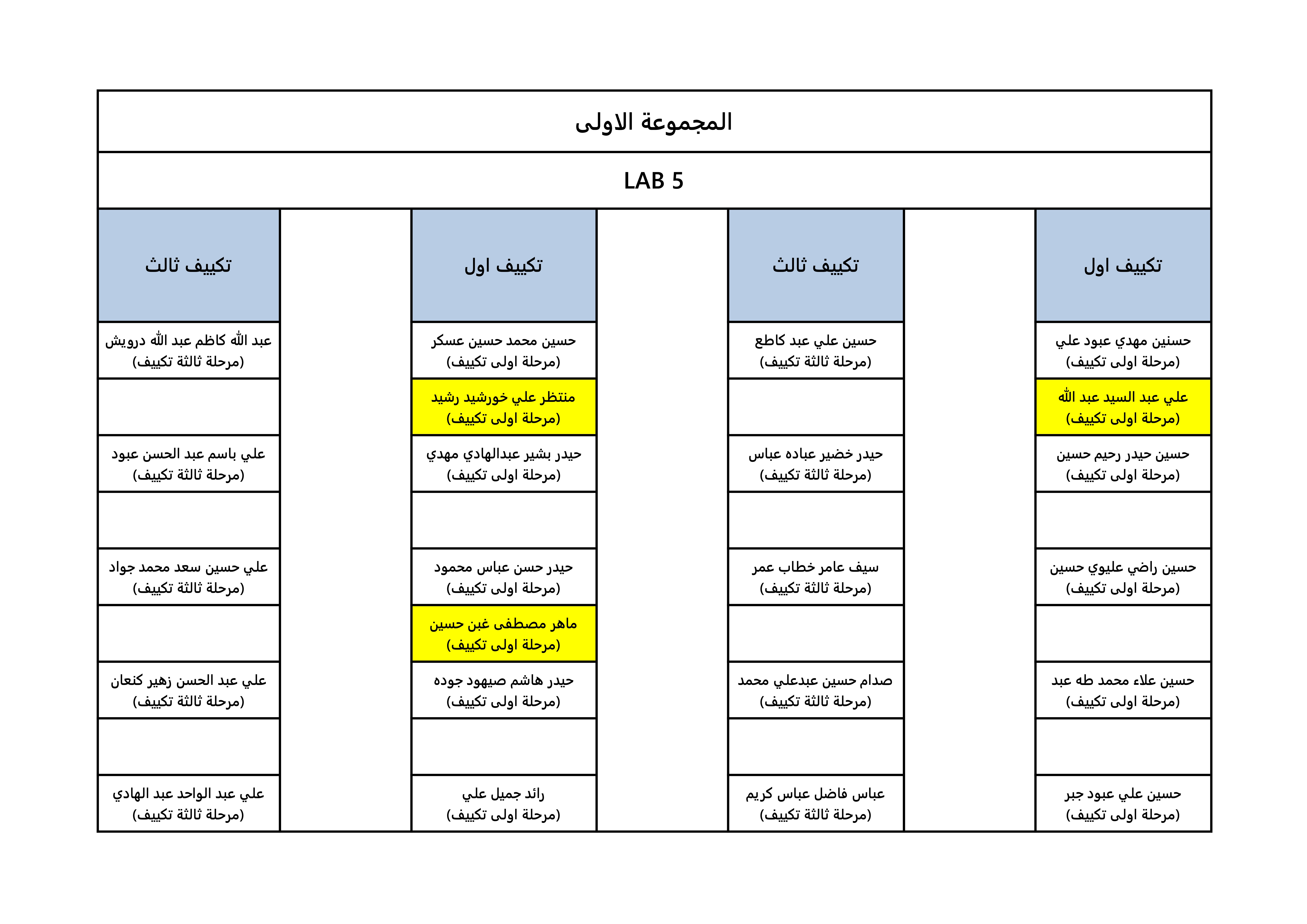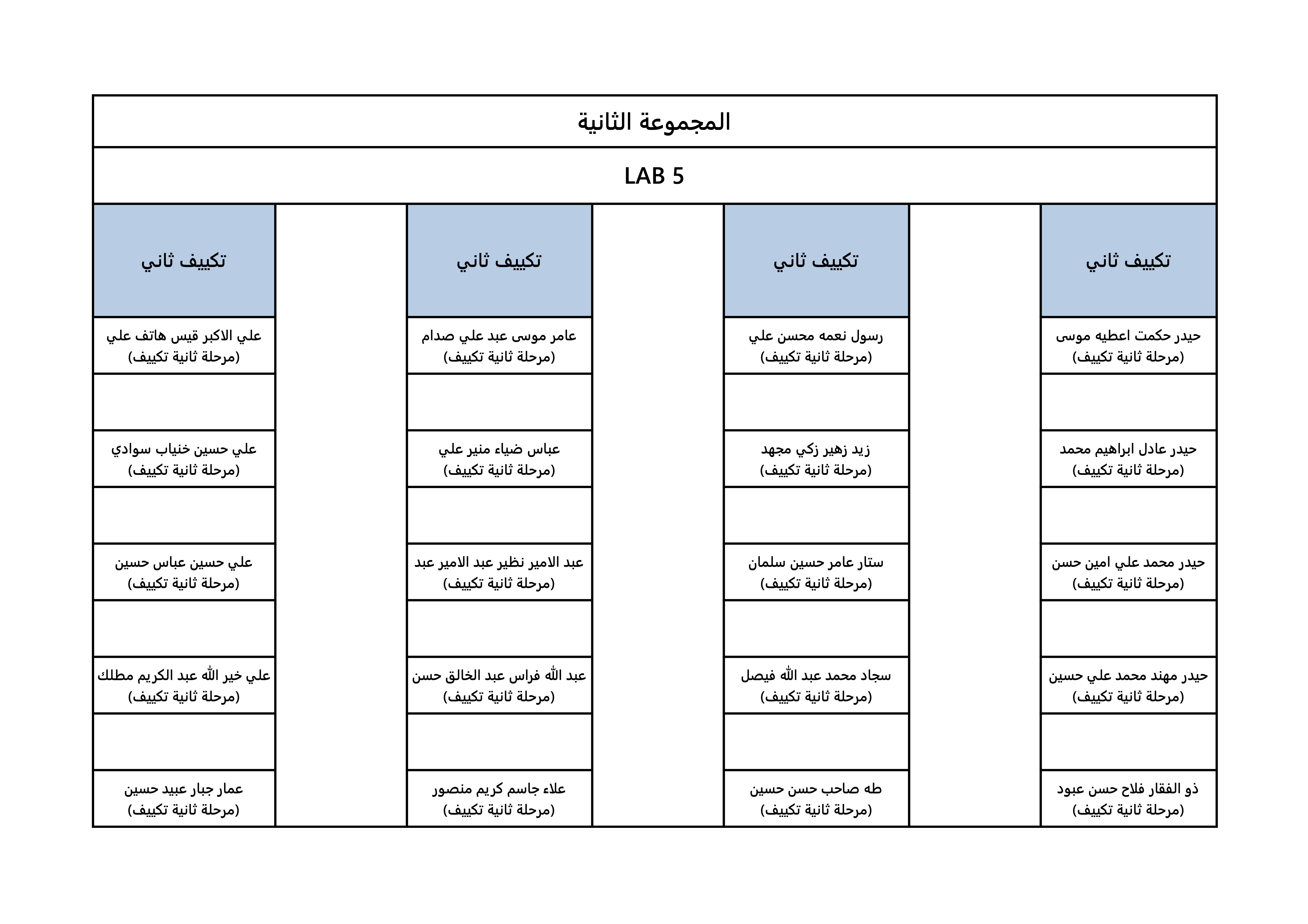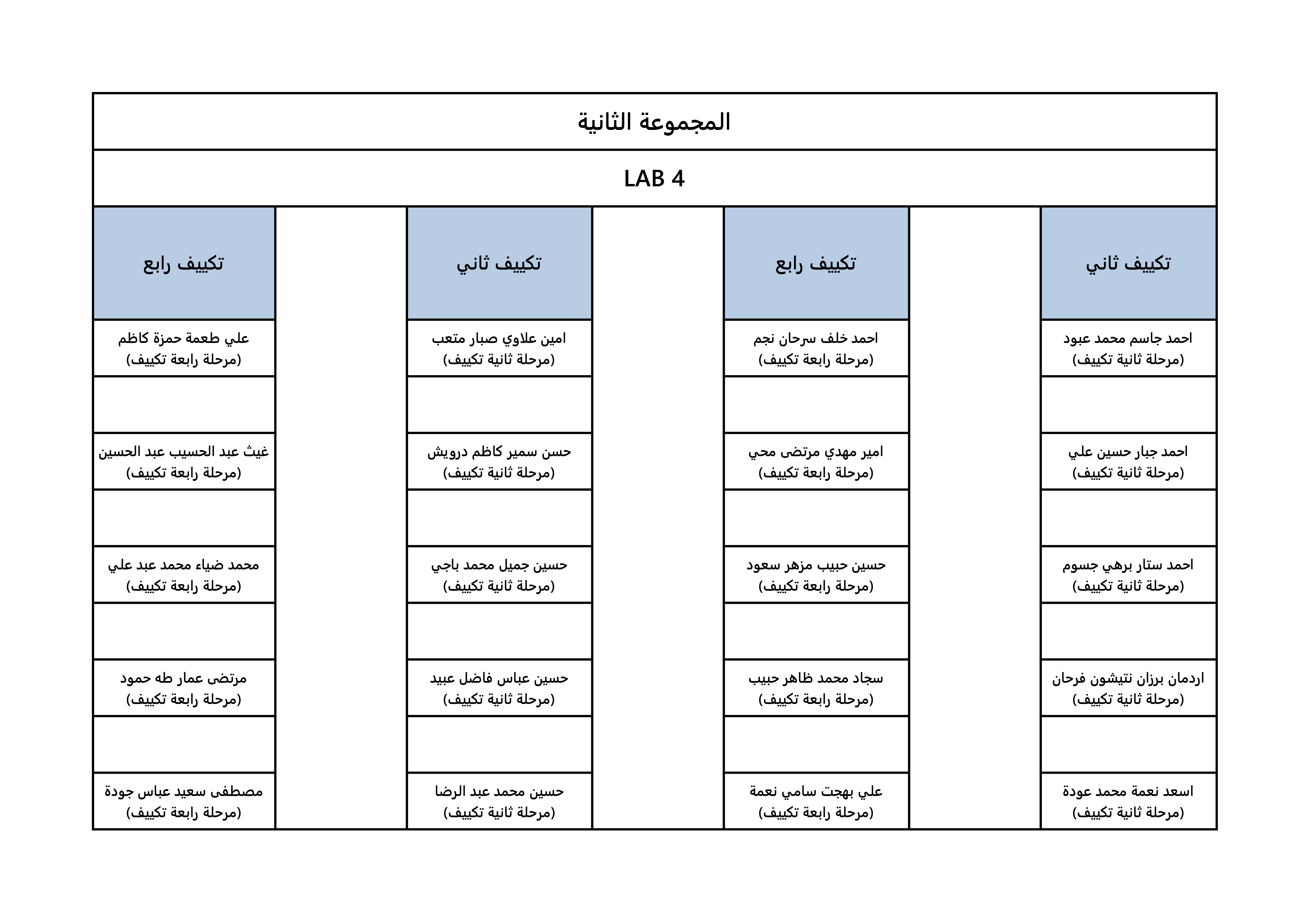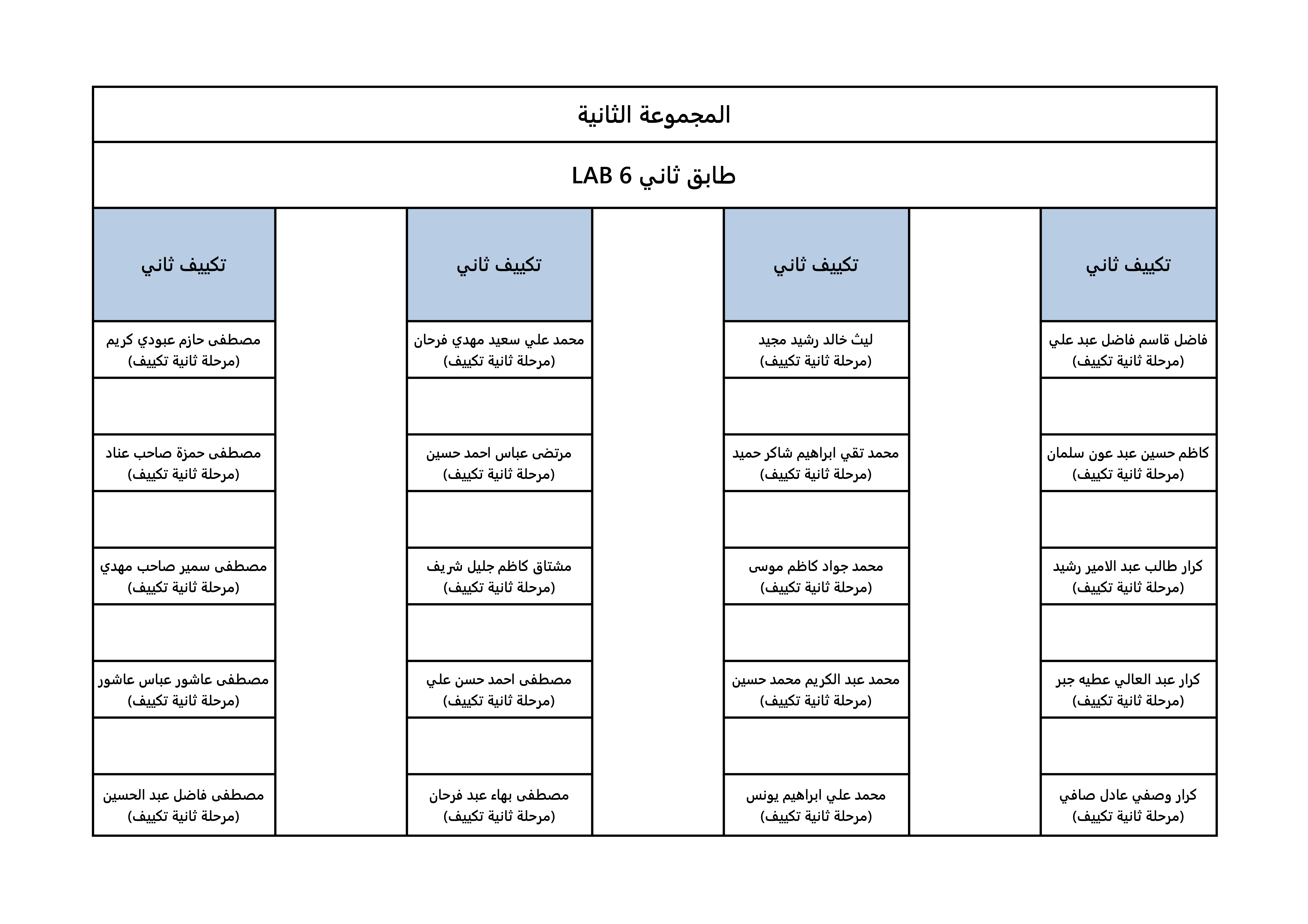 خارطة جلوس الطلبة لقسم هندسة تقنيات التكييف و التبريد