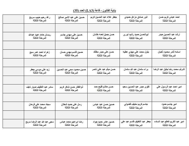 خارطة جلوس طلبة قسم الهندسة المدنية - المرحلة الثالثة