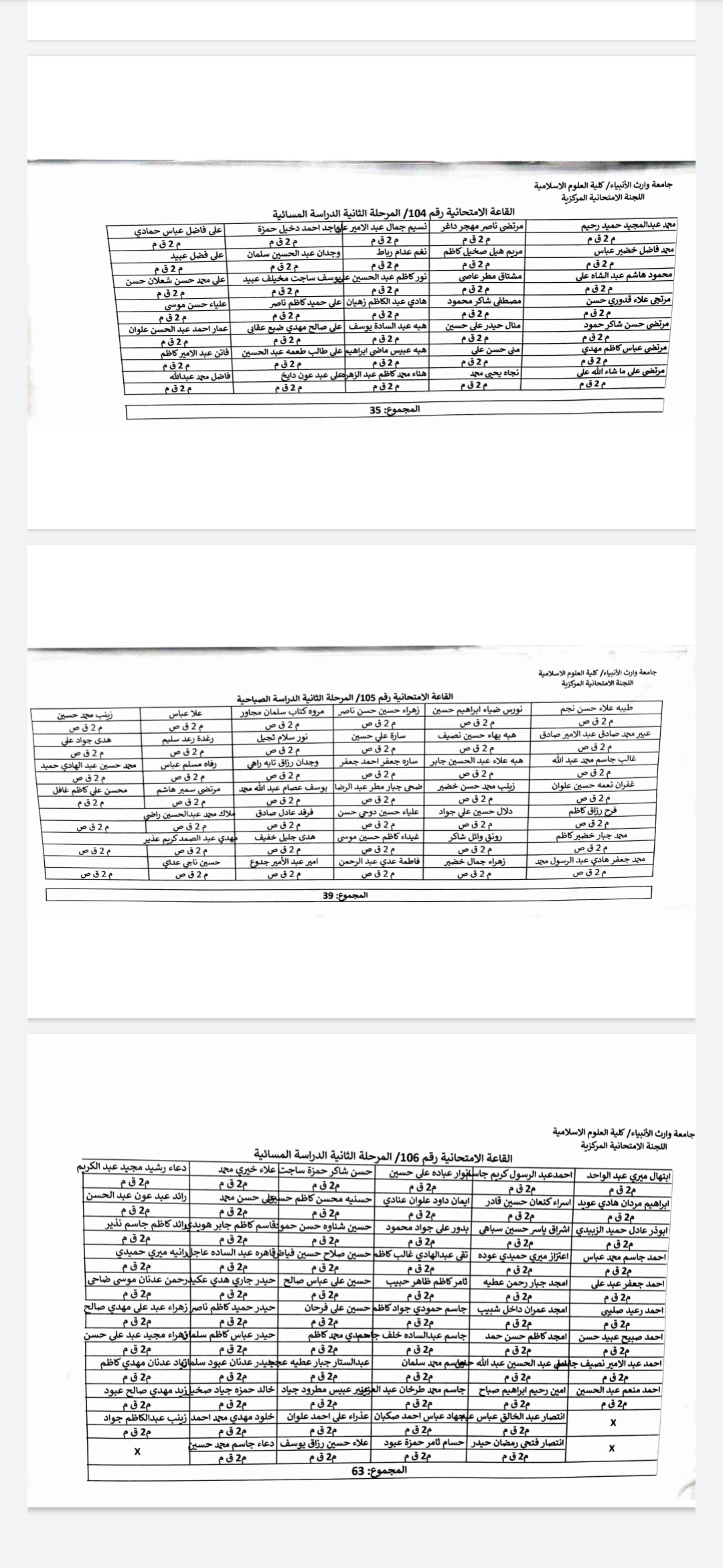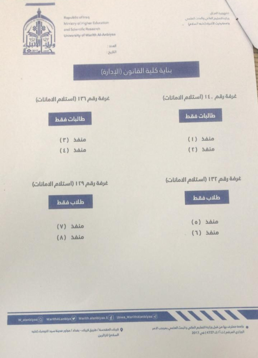 8.سيكون أداء الامتحانات في بناية العلى وعلى القاعات الدراسية والتي تبدأ من القاعة رقم 101_106 ملاحظة/ الامتحان يبدأ الساعة 9 صباحادعاؤنا لكم بالنجاح والسداد