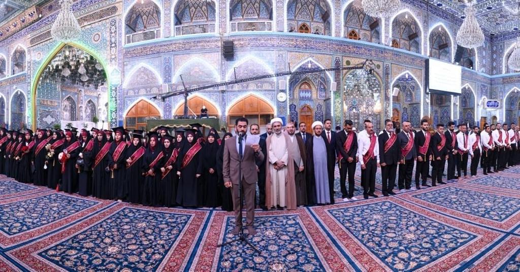حيث جرى الحفل البهيج في الصحن الحسيني الشريف، بحضور عميد الكلية الاستاذ المساعد الدكتور طلال الكمالي والسادة والسيدات اعضاء هيئة التدريس .