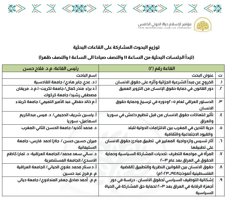 أبحاث المؤتمر العلمي الخامس "الإسلام حياة" الموسوم بـ "حقوق الإنسان والتحديات المعاصرة"