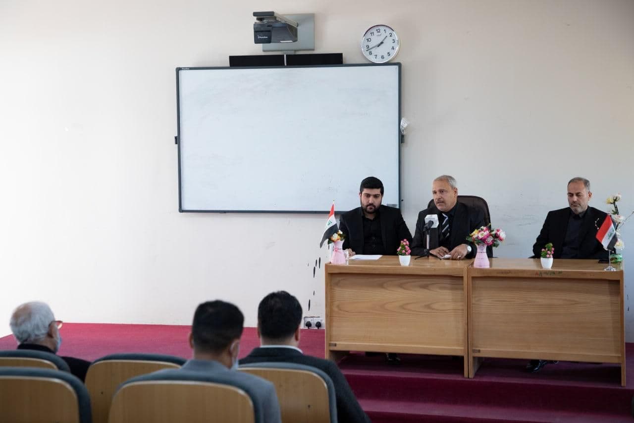 اقامت كلية القانون في جامعة وراث الانبياء ندوةً علمية إحياء لذكرى استشهاد السيدة فاطمة الزهراء عليها السلام حضرها السيد رئيس الجامعة جناب الدكتور طالب موسى المحترم وجمع من أعضاء الهيأة التدريسية والطلبة , ادار الجلسة السيد عميد كلية القانون الدكتور عدنان الشروفي حيث أشار في كلمته الموجزة الى عظمة هذه المناسبة وما تحمله من مضامين اخلاقية وتربوية جمة , بعدها طلب السيد رئيس الجلسة من الدكتور فلاح حسن عطية ان يقدم ورقة علمية تتعلق بسيرة الزهراء عليها السلام اكد فيها الدكتور فلاح حسن عطية على ابراز دور الزهراء عليها السلام قرآنيا وذلك من خلال عرض جملة من الايات الكريمة تثبت هذا الدور وبالاستناد الى الرويات الصحيحة التي وردت من قبل المذاهب الاسلامية الرئيسية , وبعد ان انتهى الدكتور فلاح حسن عطية من كلمته دعا السيد مدير الجلسة الدكتور الشروفي الدكتور احمد فاضل الصفار الى القاء كلمة بهذه المناسبة الكريمة , وجاءت كلمة الدكتور احمد الصفار تحت عنوان رئيسي تمثل في ما للسيدة الزهراء عليها السلام من حرمة في اطار المنظومة الاسلامية لاسيما في نطاق فكر مدرسة اهل البيت عليهم السلام , بعد ذلك فتح السيد مدير الجلسة الدكتور عدنان الشروفي الباب امام مداخلات الحضور , حيث شاركت التدريسية في كلية القانون م.م ايلاف فاخر كاظم بكلمة مرتجلة عبرت فيها عن ضرورة الالتزام بنموذج القدوة وخير ما يمثل هذا النموذج هي السيرة العطرة للسيدة فاطمة الزهراء عليها السلام لانه النموذج الاكمل الذي ينبغي ان يسود شريحة النساء على وجه الخصوص كي تحظى المرأة بخير الدنيا والاخرة وتكون قادرة على تحمل اعبائها ومسؤلياتها بجدارة على غرار صاحبة الذكرى السيدة فاطمة الزهراء عليها السلام ,