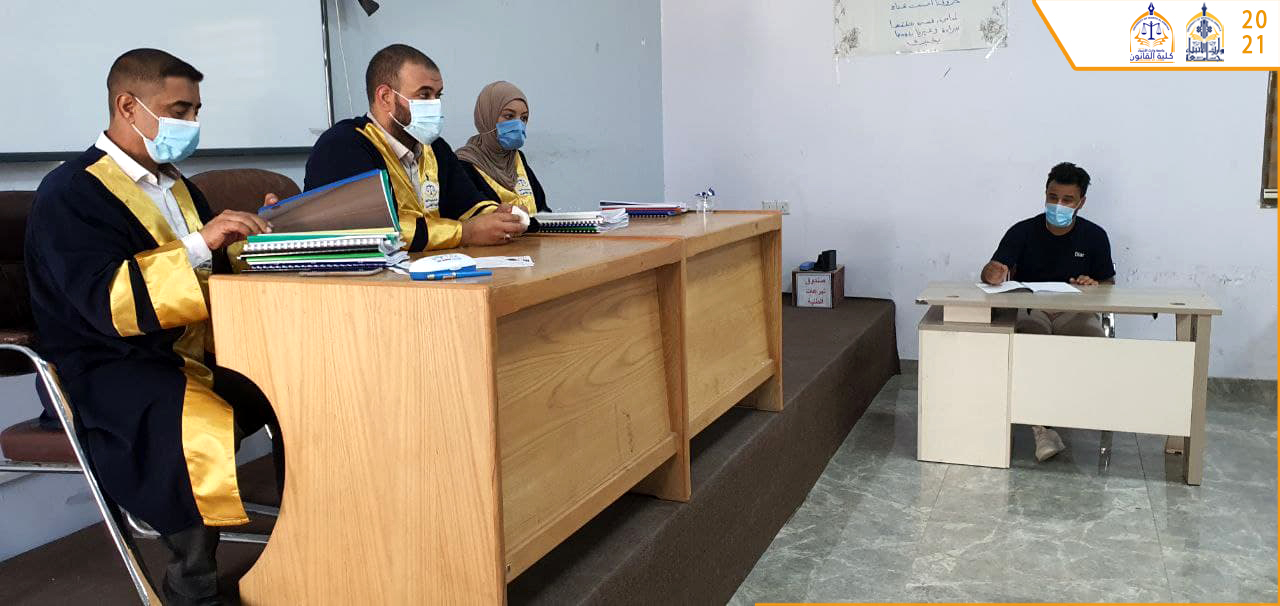 لليوم الثالث على التوالي تستمر كلية القانون بمناقشات بحوث الطلبة للمرحلة الرابعة للعام الدراسي 2020-2021 وفق اجواء علمية رصينة بغية الوصول الى افضل النتائج.