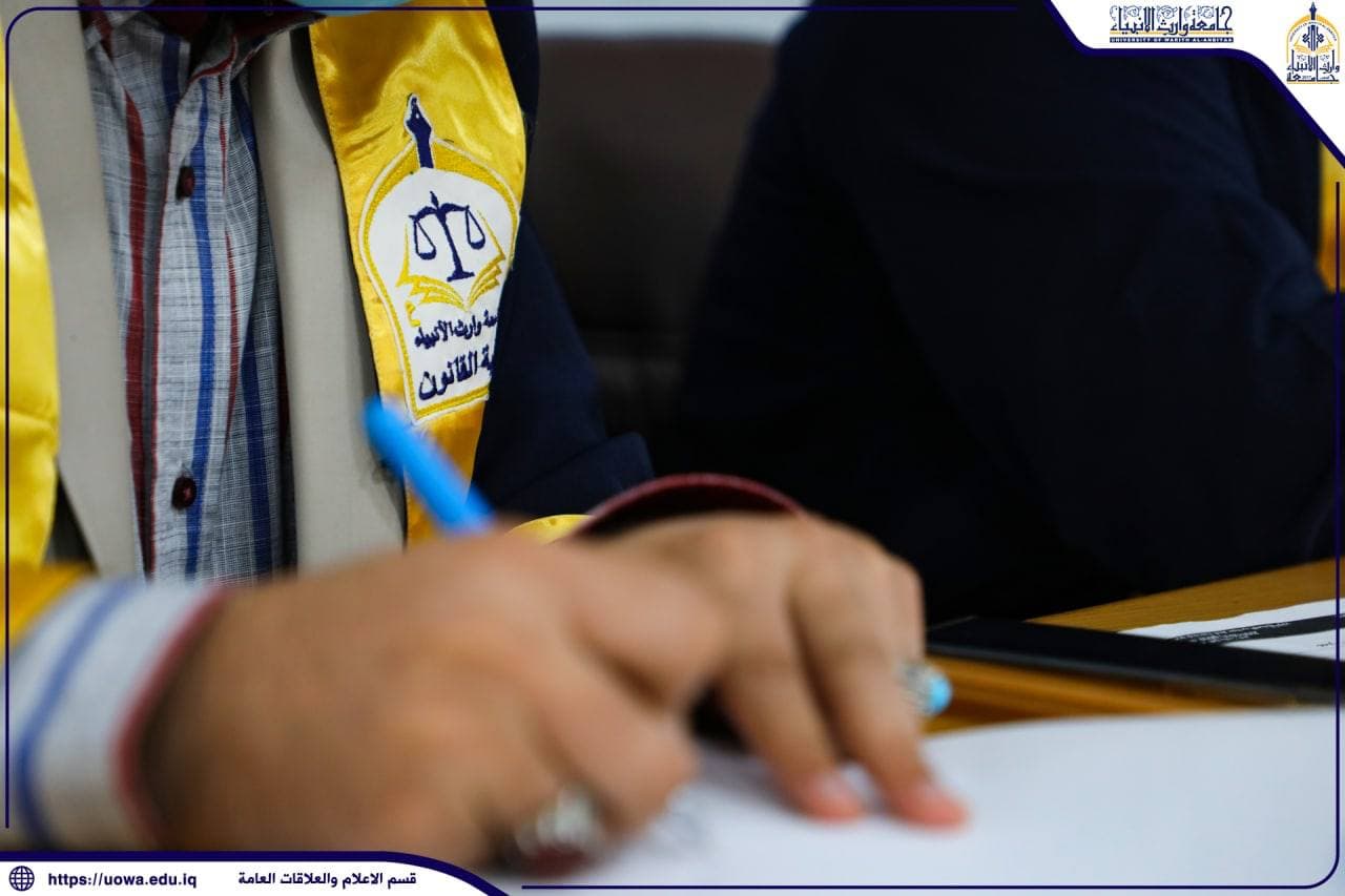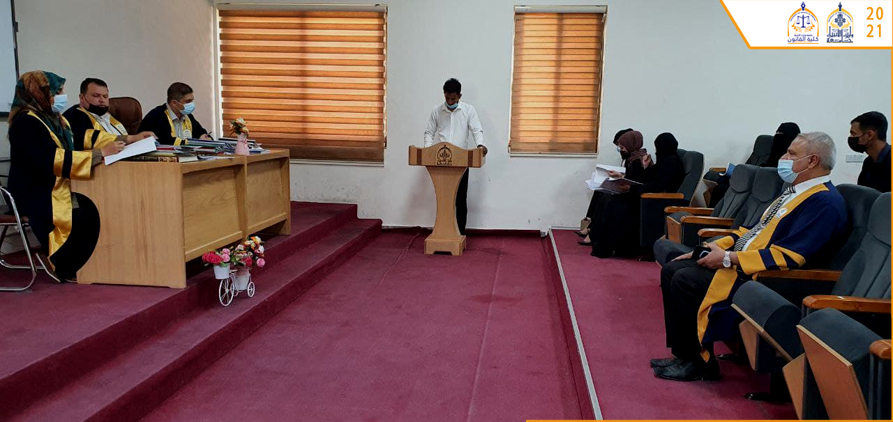 أنهت كلية القانون بتاريخ 2021/6/30 مناقشة بحوث التخرج التي جرت في قاعات الكلية من تاريخ 26/6/2021 بحضور السيد عميد الكلية أ.م.د عدنان هاشم جواد والسيد رئيس القسم أ.م.د علي صاحب جاسم .