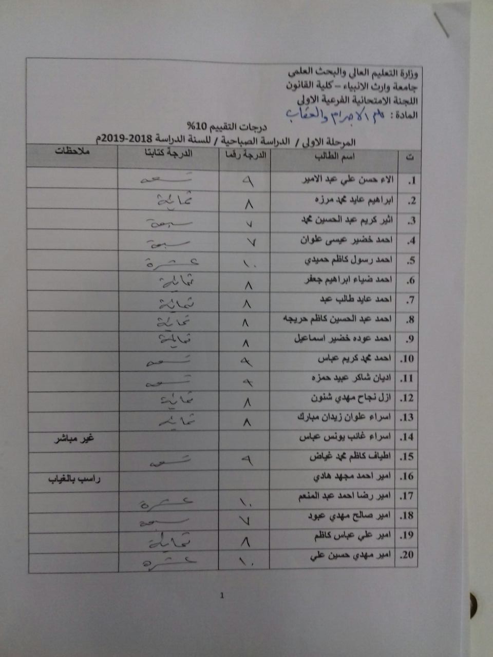 كلية العلوم تعلن عن مبلغ القسط الدراسي لقسم الأدلة الجنائية