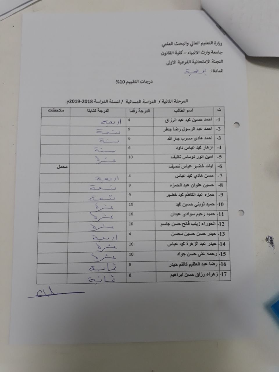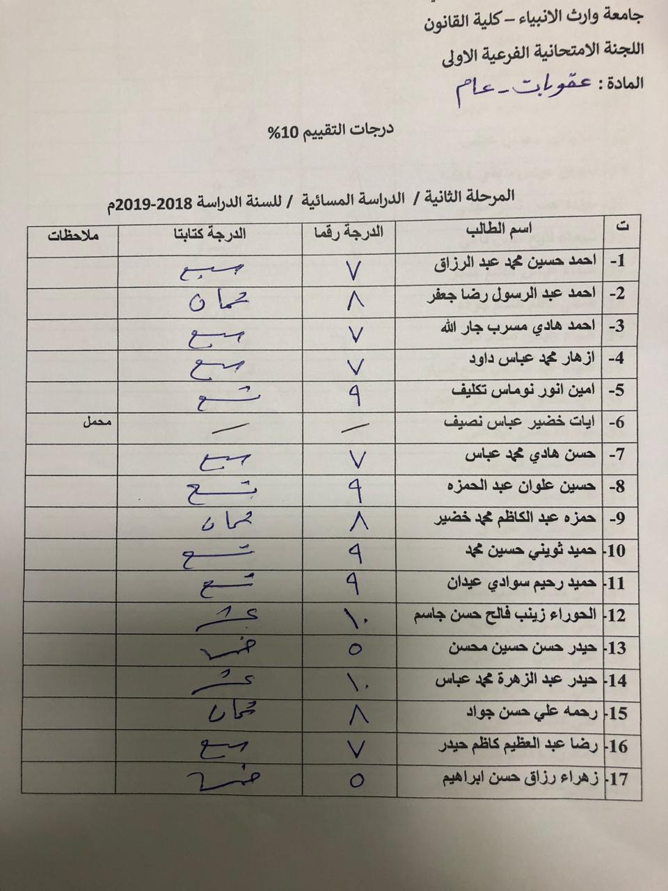 درجات الشفوي (المرحلة الثانية)