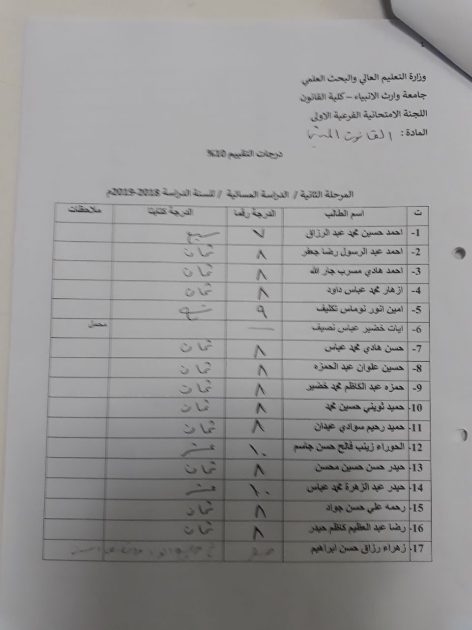 جدول الامتحانات الشهرية