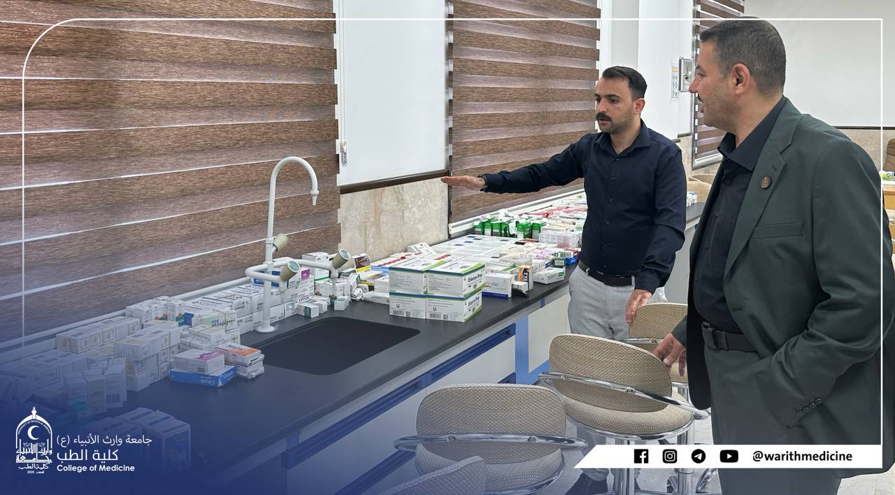 بمتابعة عميد كلية الطب الاستاذ الدكتور علي عبد سعدون في تجهيز كافة المختبرات بكافة الاجهزة والمواد استعداداً للسنة الدراسية الجديدة تم تجهيز مختبر الادوية بعدد من العينات التعليمية بعد تجهيز المختبرات بأحدث الاجهزة ومن مناشئ عالمية .