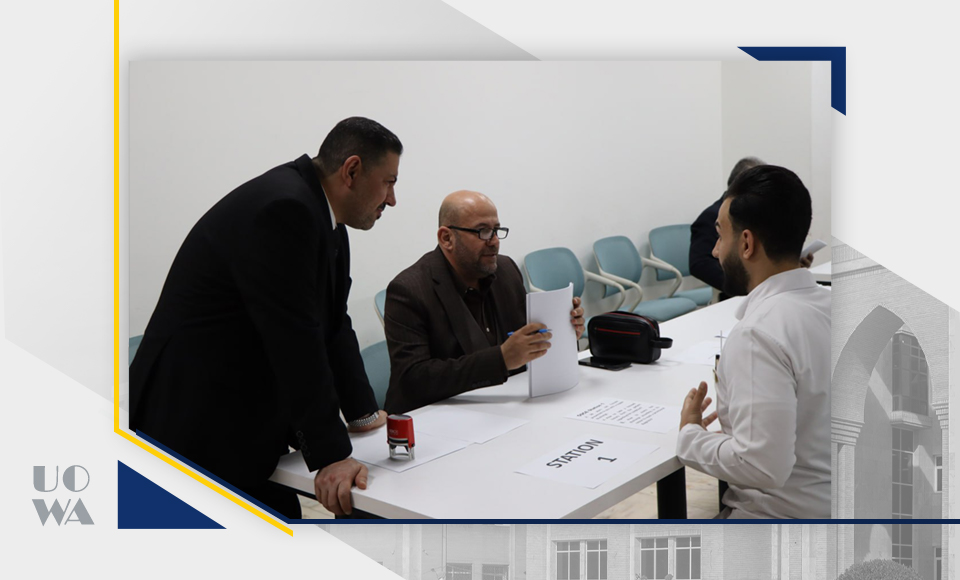 بإشراف الأستاذ الدكتور علي عبد سعدون، عميد كلية الطب، والسيد معاون العميد للشؤون العلمية الدكتور ليث الحسيني، أجرت الكلية امتحان الـ OSCE (Objective Structured Clinical Examination) لطلبة المرحلة الرابعة، والذي يُعدّ أحد أهم أساليب التقييم السريري الحديثة.
