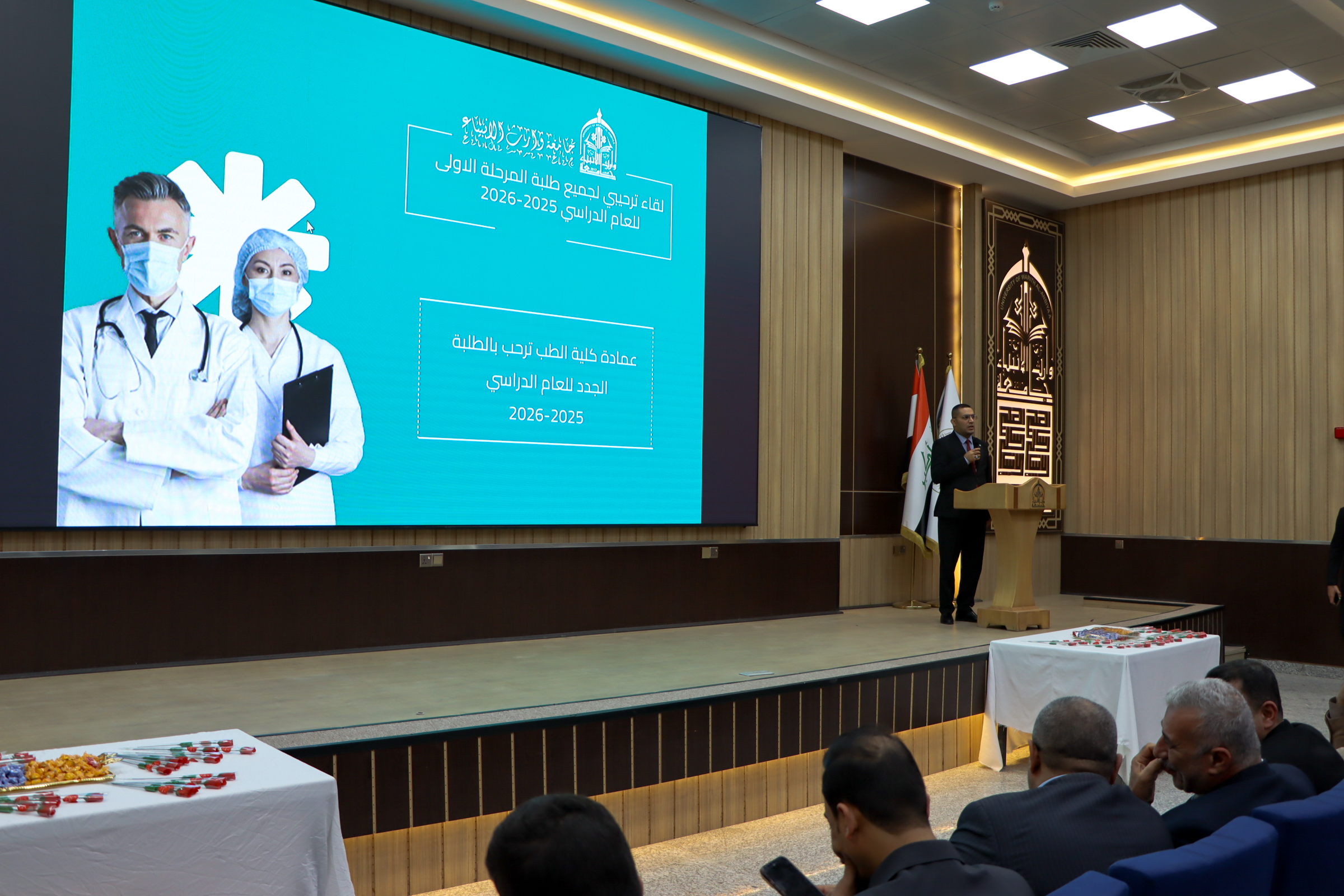 رحّبت كلية الطب في جامعة وارث الأنبياء (ع) بطلبتها الجدد من المرحلة الأولى للعام الدراسي 2025–2026، متمنيةً لهم مسيرة أكاديمية موفّقة حافلة بالجدّ والاجتهاد. كما رحّب الأستاذ الدكتور عميد كلية الطب، علي سعدون الغزي بالطلبة الجدد، مؤكداً حرص الكلية على توفير بيئة تعليمية متكاملة تسهم في إعداد أطباء أكفاء علمياً ومهنياً، وبما ينسجم مع أهداف التعليم الطبي ومتطلبات خدمة المجتمع.