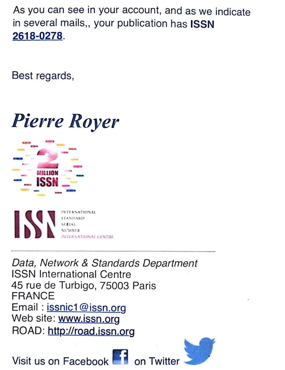 من أجل تحقيق الرصانه العلمية والتي هي مطلب من مطالب الجودة نبارك لجامعة وارث الانبياء التابعة للعتبة الحسينية المقدّسة حصول مجلة وارث العلمية /جامعة وارث الانبياء على الرقم المعياري الدولي (Issn) ونتمنى للجامعة المزيد من العطاء في المجالات العلمية
