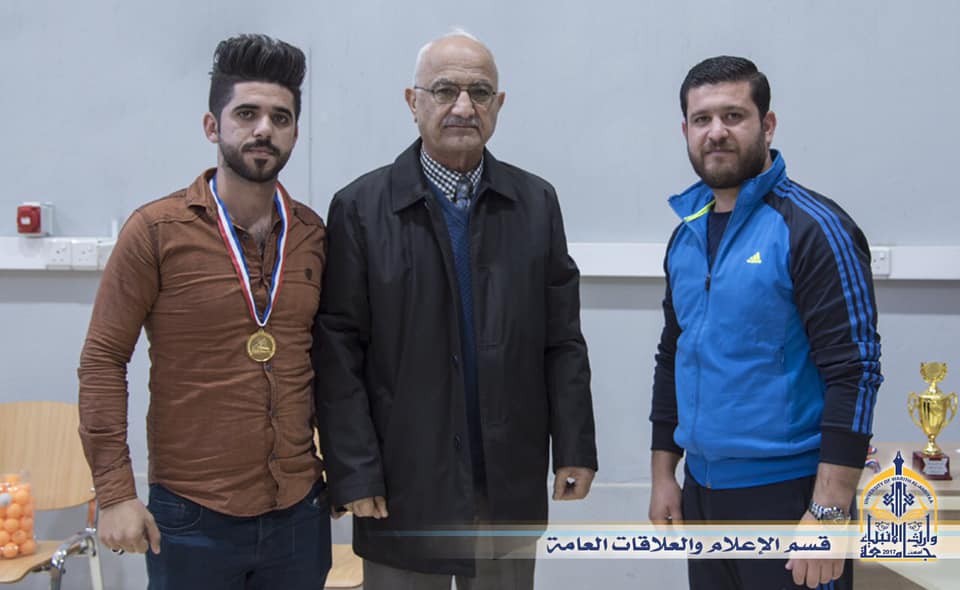 مَن الأنشطة الطلابية التي تقيمها جامعة وارث الانبياء وبالتعاون مع مركز رعاية الشباب التابع للعتبة الحسينية المقدسة ،بطولة الجامعة لتنس الطاولة حيث أختتمت فعاليات البطولة التي دامت لمدة ثلاث ايام وبحضور السيد المساعد الإداري الاستاذ الدكتور نوفل الاعرجي بتوزيع الجوائز للفائزين الاربع الاوائل حيث حصل الطالب امير محمد حسين من كلية الادارة والاقتصاد على المركز الاول والطلب عون علي من كلية الهندسة على المركز الثاني.