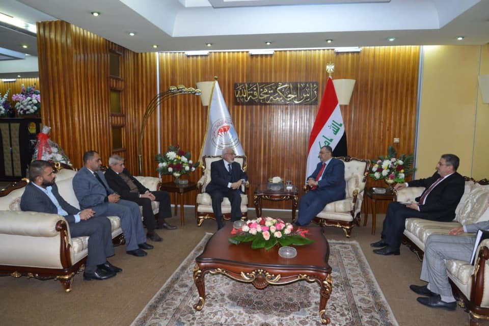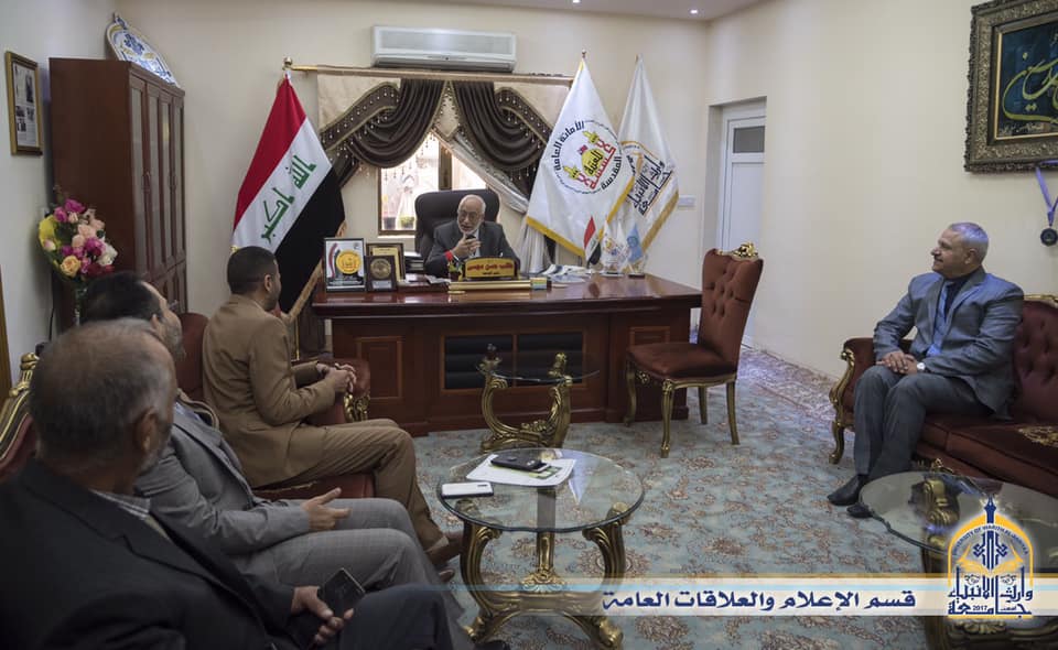 زار وفد من جامعة وارث الأنبياء التابعة للعتبة الحسينية المقدسة برئاسة الاستاذ الدكتور طالب حسن موسى رئيس الجامعة وزير التعليم العالي والبحث العلمي لتأكيد حرص الجامعة على النهوض بالواقع التعليم في البلد والرصانة العلمية وايضا لتهنئته بمناسبة تسلمه منصب الوزارة ورافق الوفد السيد المساعد العلمي الاستاذ الدكتور عباس الدعمي ومدير ادارة الجامعةم.م. صلاح اليساري و م.م. صفاء السعيدي ورئيس البورد العراقي الدكتور فالح البياتي