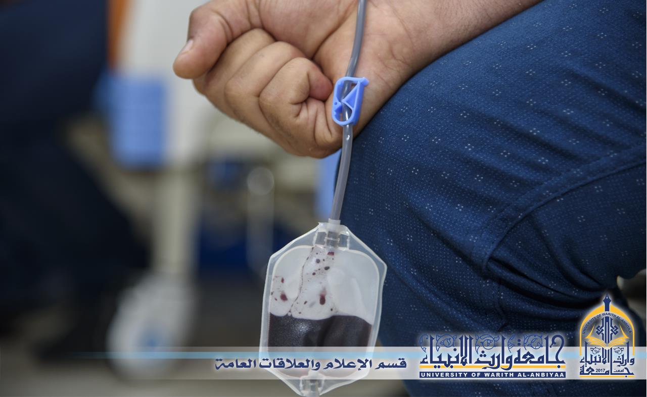 أقامت جامعة وارث الانبياء بالتعاون مع دائرة صحة كربلاء المقدسة حملة للتبرع بالدم لمساعدة المرضى في المستشفيات حيث بين السيد عميد كلية التمريض الدكتور خميس بندر عبيد بأن الكلية كثفت جهودها من اجل نشر ثقافة المحبة والايثار بالنفس من خلال رفع البوسترات المشجعة على التبرع بالدم اضافة الى تسهيل عمل الكادر الطبي بتهيئة المكان المناسب له ومواكبة عمله ويدل هذا على مدى الشعور بالمسؤولية وروح المواطنة خصوصا وان هذه الدماء النقية الصادقة سوف تنفذ ارواح اناس قدموا لنا الامن والامان ويذكر أن الحملة هي الاولى من نوعها في الجامعة وقد شهدت مشاركة طلابية واسعة أبدى خلالها الطلاب استعدادهم للتبرع بالدم لمساعدة جرحى الحشد الشعبي ومرضى السرطان.