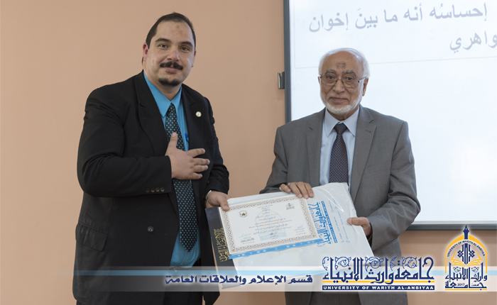 التقى وفد جامعة وارث الأنبياء الممثل برئيسها ا.د. طالب حسن موسى الموسوي ومعاون الأمين العام للعتبة الحسينية المقدسة السيد أفضل الشامي وعميد كلية الإدارة والاقتصاد ا.د.عباس الدعمي ومدير الموارد البشرية م.م صلاح اليساري مع معالي وزير التعليم العالي والبحث العلمي ا.د. عبد الرزاق ألعيسى جرى البحث في سبل الرقي بالجامعة والاليات تطويرها وامكانيات استحداث كليات جديده الى الجامعة التي تعتقد ادارة الجامعة بأن المجتمع بحاجه اليها كي تكون جامعة متميزة بتميز اسمها والجهة التي تنتمي إليها ومدى اهتمام الجامعة بسد حاجة المجتمع بكل التخصصات اللازمه خاصة أن الجامعة هي جامعة السيد وارث الأنبياء ولا تهدف إلى الربح بقدر ماتهدف إلى تحقيق الرصانة العلمية ممزوجة بالرصانة الخلقية والسلوكية وهذا مايشدد عليه المتولي الشرعي للعتبة الحسينية المقدسة سماحة الشيخ عبد المهدي الكربلائي في كل لقاء مع كوادر الجامعة كما وتم التطرق الى طرح مشروع جامعة جديده تعد هي الاولى من نوعها على مستوى البلد ( جامعه للبنات ) فقط كما بين الوفد أن من أسباب رقي وازدهار كربلاء المقدسة هي الجهود الجبارة الحسينية والتي جاءت تنفيذا لسياسة العتبة المقدسة لخدمة المجتمع من دون تمييز وانتهى اللقاء بتوجيه الشكر والتقدير لمعالي الوزير لإتاحة الوقت للاستماع إلى مشاريع توسعة جامعة وارث الأنبياء