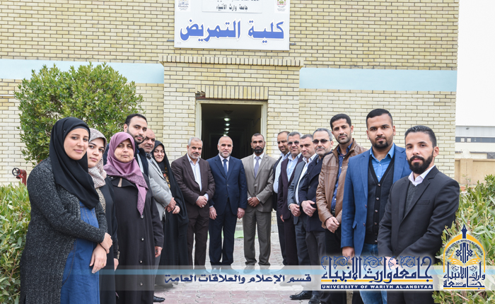 زار وفد من جامعة كربلاء جامعة وارث الانبياء من اجل تبادل الخبرات وفتح افاق التعاون بين الجامعتين حيث قدم رئيس الوفد الدكتور علي كريم خضير عميد كلية التمريض في جامعة كربلاء التهاني للجامعة وخص الدكتور خميس بندرعبيد عميد كلية التمريض في جامعة وارث الانبياء بلتبريكات متمنيا له وللجامعة كل التوفيق في مسيرتهم العلمية خدمة للمجتمع