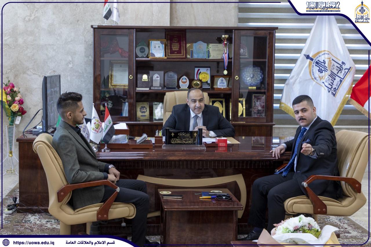 التقى الاستاذ الدكتور ابراهيم سعيد الحياوي في مكتبه بفريق عطاء طلبة جامعة وارث الانبياء(عليه السلام) التطوعي الذي أسسه عدد من طلبة الجامعة لتقديم الخدمات الإنسانية لمن يحتاجها داخل وخارج الجامعة و عرض الطلبة نشاطاتهم التطوعية والإنسانية التي قاموا بها منذ تأسيس هذا الفريق وأبدى السيد رئيس الجامعة إعجابه الشديد بهذه النشاطات الإنسانية و دعمه الكامل لهم ولنشاطاتهم المهمة داخل وخارج الجامعة.