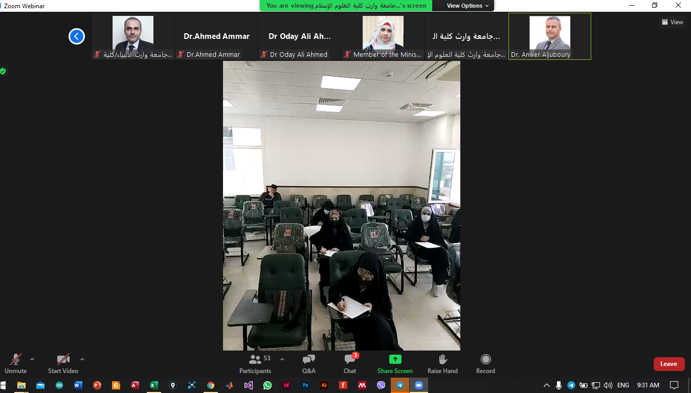 وضمن المتابعة الالكترونية مع الوزاره التي يؤديها مركز التعليم التعليم المستمر / شعبة التعليم الالكتروني ، تمت زيارة الجامعة من قبل الفريق الوزاري متمثلا بالدكتور(انور الجبوري) فقد زار الفريق الوزاري كلا من كلية التمريض وكلية الطب وكلية العلوم الاسلامية وقد اطلع على القاعات الدراسية والمختبرات في الكليات ضمن الزيارة اكد الفريق الوزاري على ضرورة ارتداء الكمامات والتباعد الاجتماعي كما قد تم سؤال التدريسيين في القاعات عن اعداد الحضور والغياب. وتاتي هذه الزيارة ضمن العديد من الزيارات التي يؤديها الفريق الوزاري للجامعة للاطلاع على سير عملية التعليم والاهتمام بالجانب الصحي . في الختام عبر الفريق الوزاري عن شكره للجامعة لما تقدمة للطلبة من اهتمام علمي وصحي.
