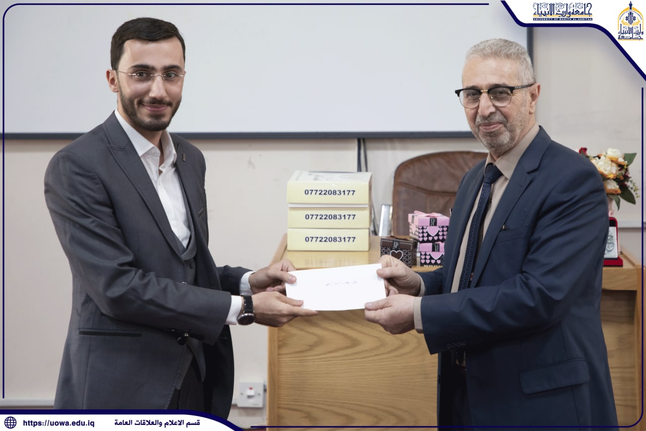 وفي نهاية الورشة تم تكريم الاستاذ علي محمد رضا على ما قدمه من معلومات قيمه باسلوب ممتع ،من قبل رئاسة جامعتنا متمثلة بالسيد عميد كلية القانون الاستاذ المساعد الدكتور عدنان جواد هاشم الشروفي .